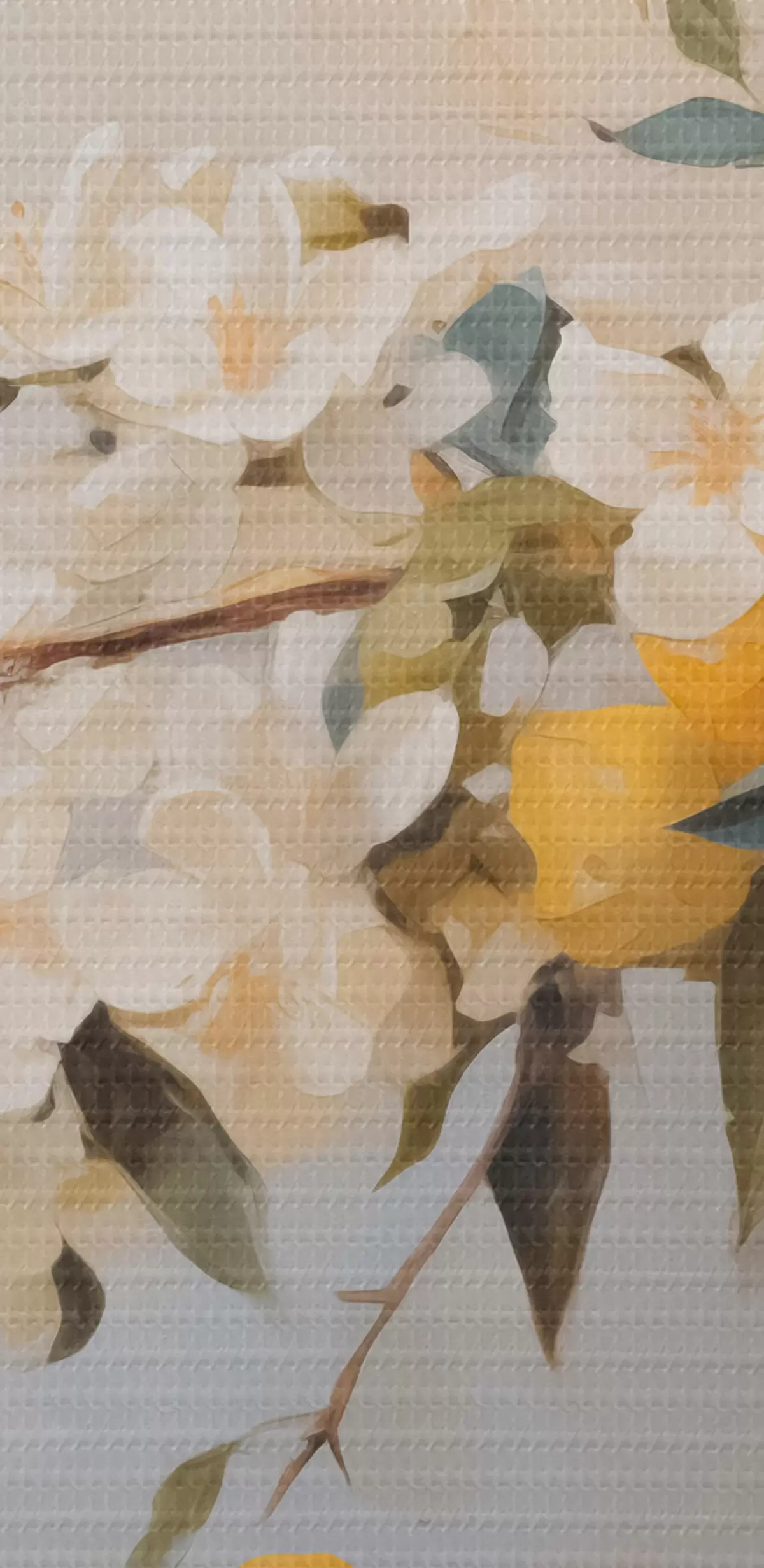 Obraz Váza s větvičkami bílých květů a malbou imitující citron Č. s42360