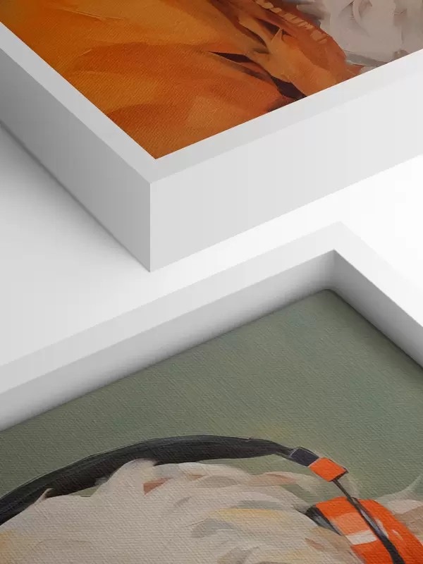 Obraz Bílý pes s oranžovou bundou a imitací sluchátek Č. s42364