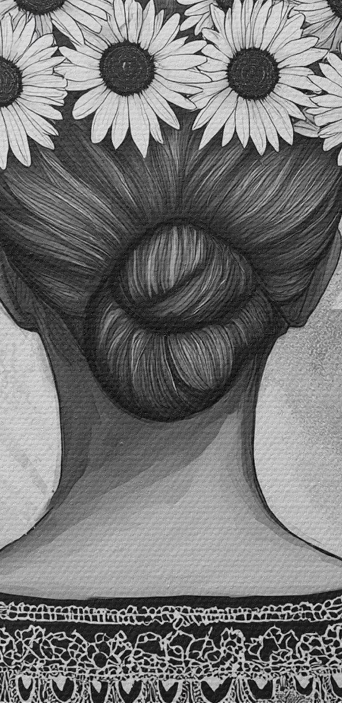 Obraz Tři ženy v etnických šatech, kresba tužkou, slunečnice Č. s42377