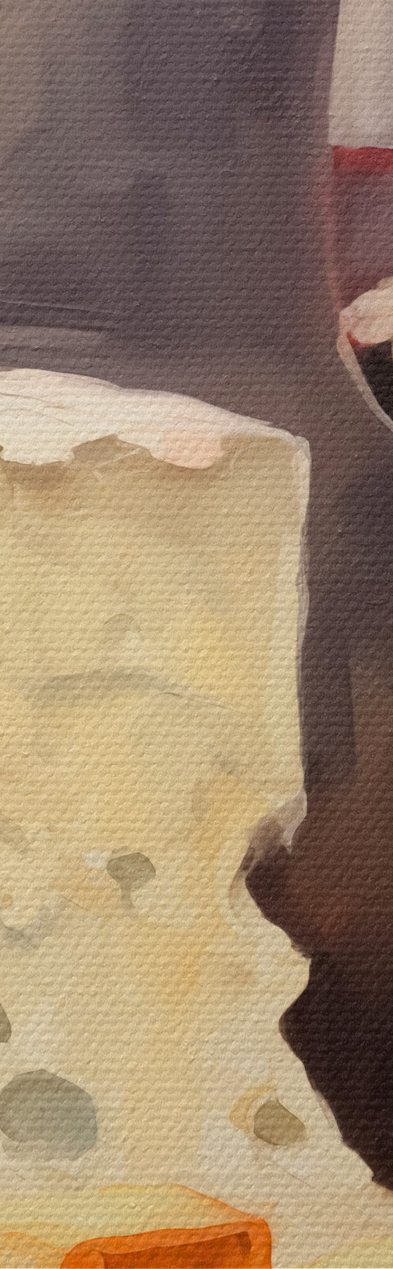 Obraz Sklenice červeného vína a imitace sýrů Č. s42415
