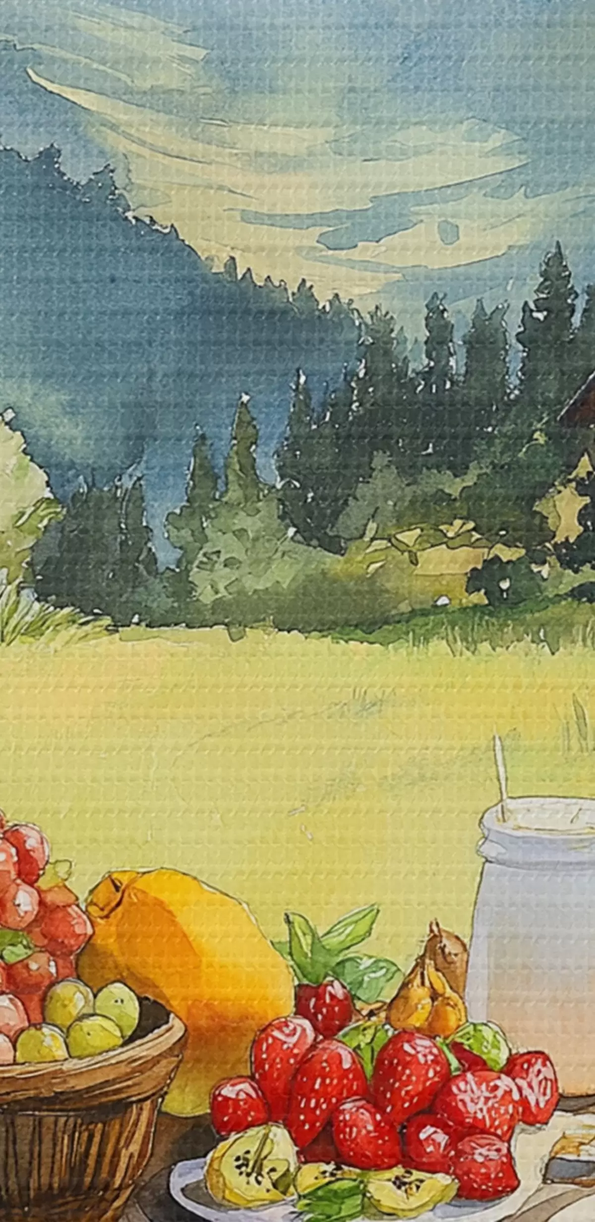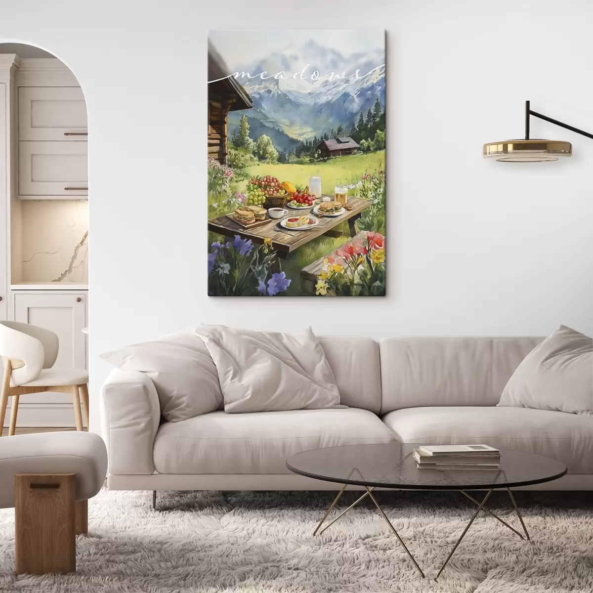 Obraz Horská krajina, letní louka, lesní domy, snídaně Č. s42425