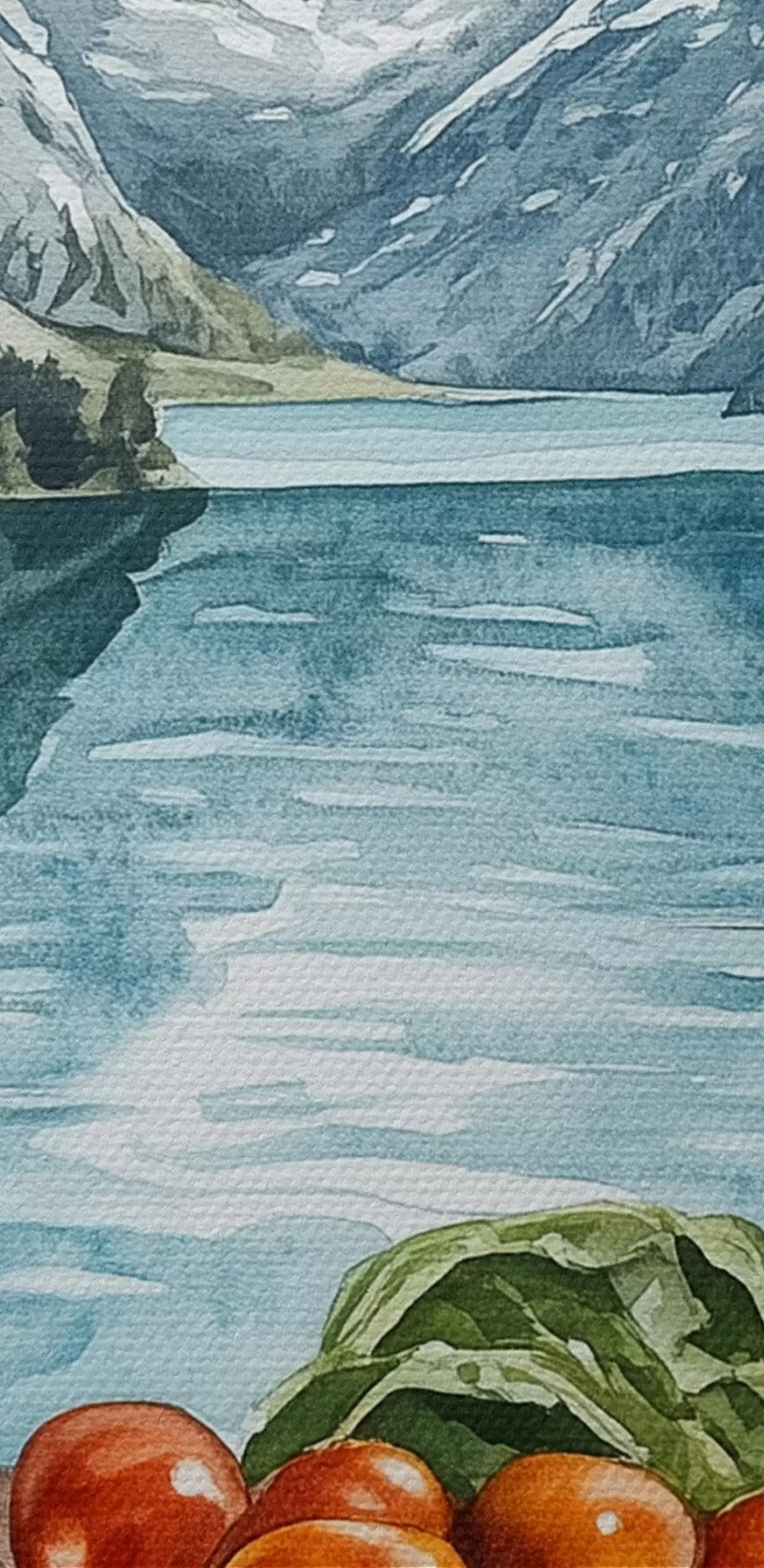 Obraz Cestování, přírodní krajiny, akvarel, Norsko, snídaně, dodávka Č. s42431