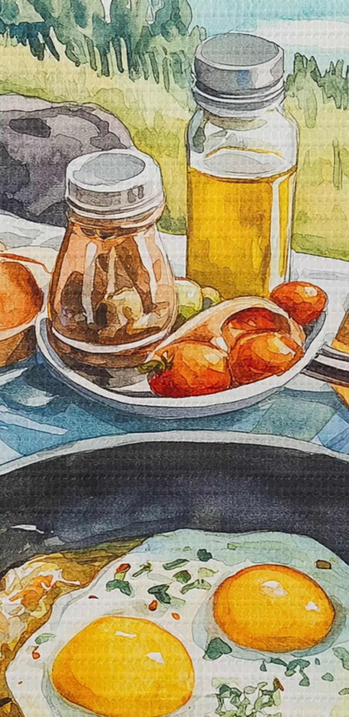 Obraz Estetická snídaně u jezera ve stylu akvarelu Č. s42432