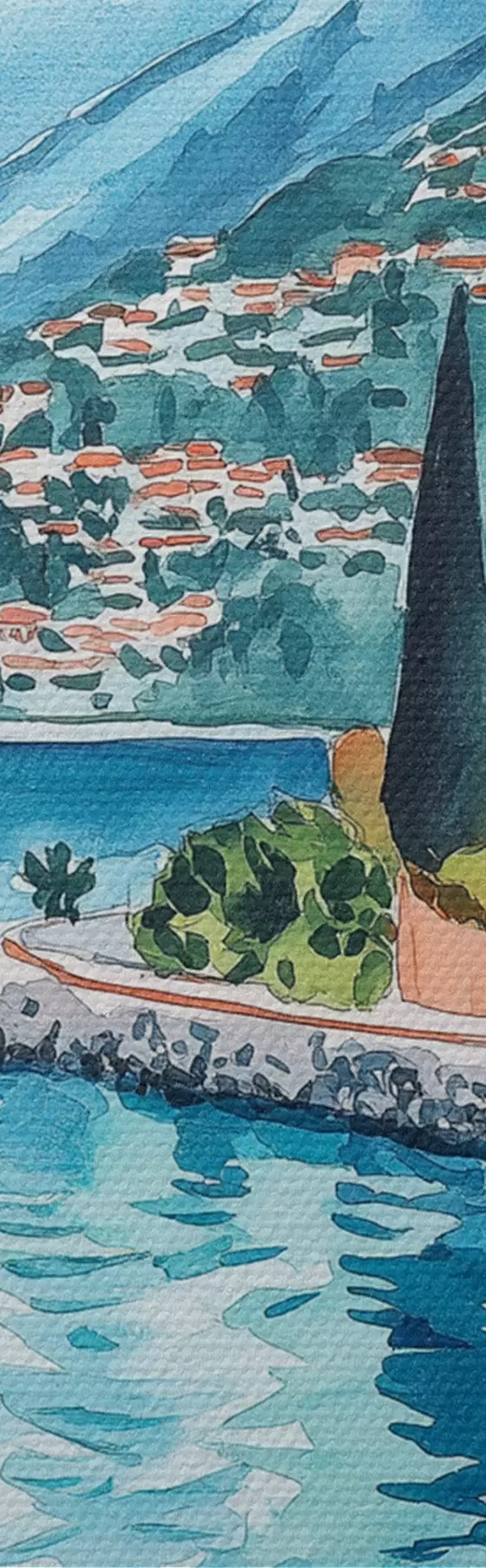 Obraz Jezero Como, Itálie, akvarel, pizza, koktejly, staré město, hory Č. s42437