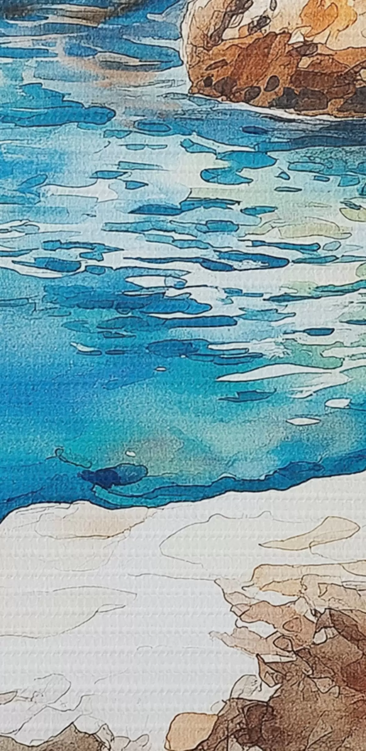 Obraz Akvarel na mořské straně s šálky kávy, léto Č. s42449