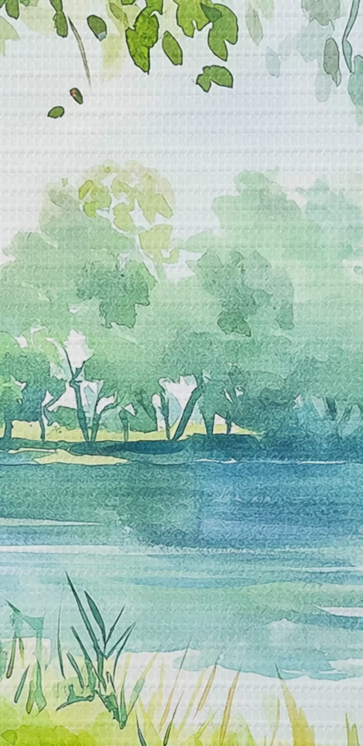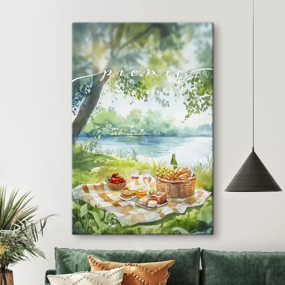 Obraz Estetika pikniku, letní příroda, jezero, romantika, akvarel Č. s42450