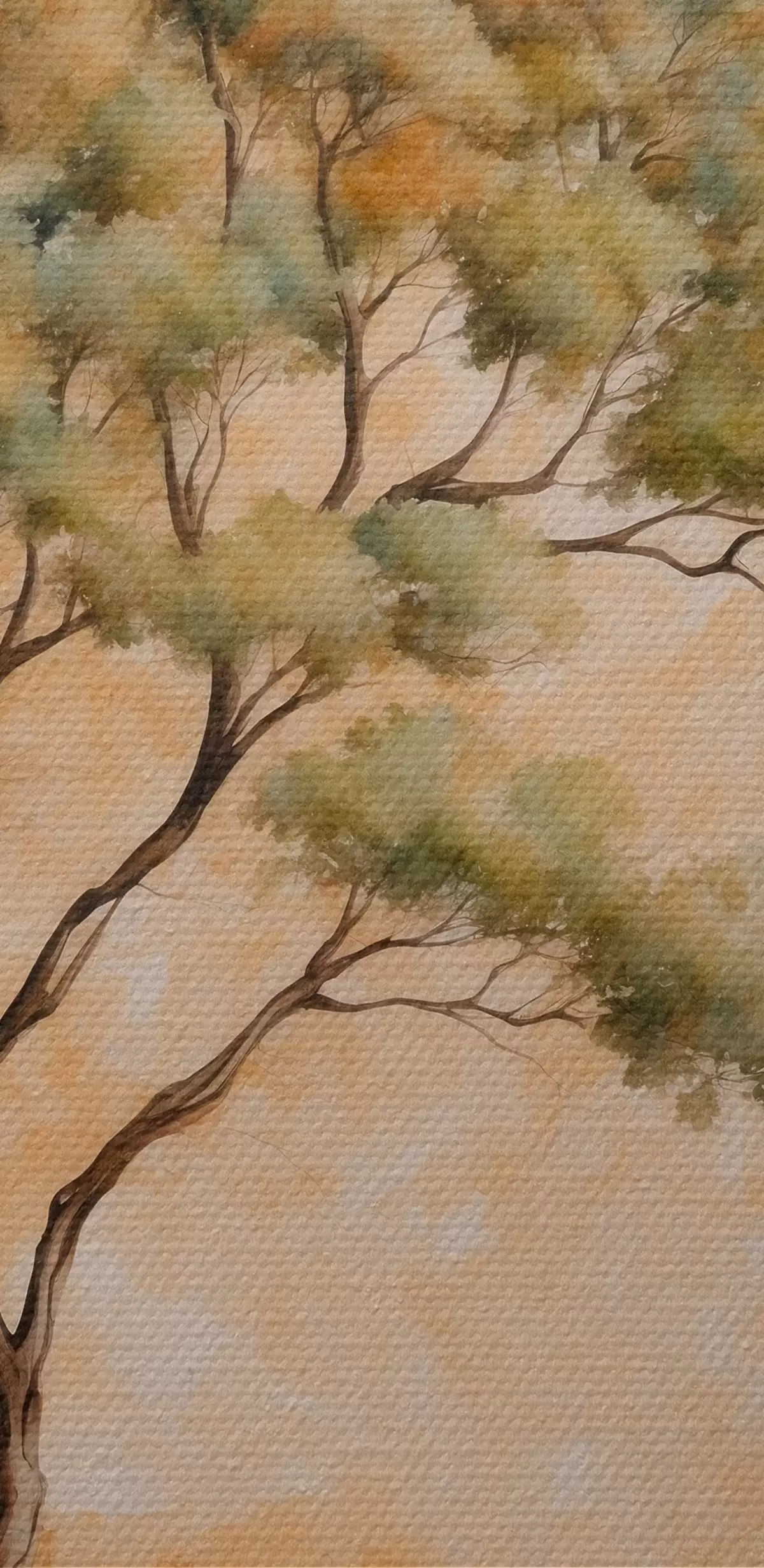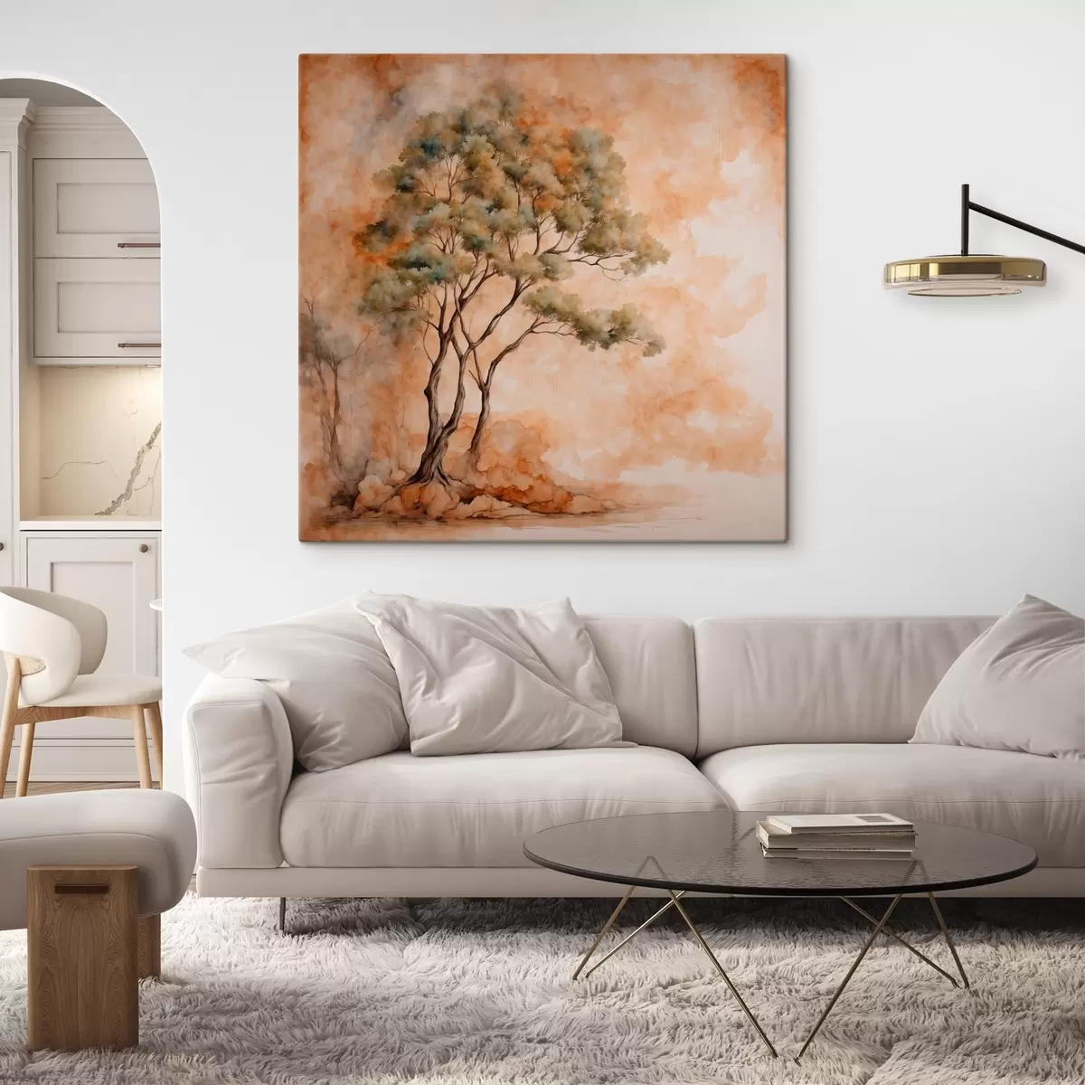 Obraz Strom na oranžovém a bílém pozadí ve stylu akvarelové malby Č. s42514