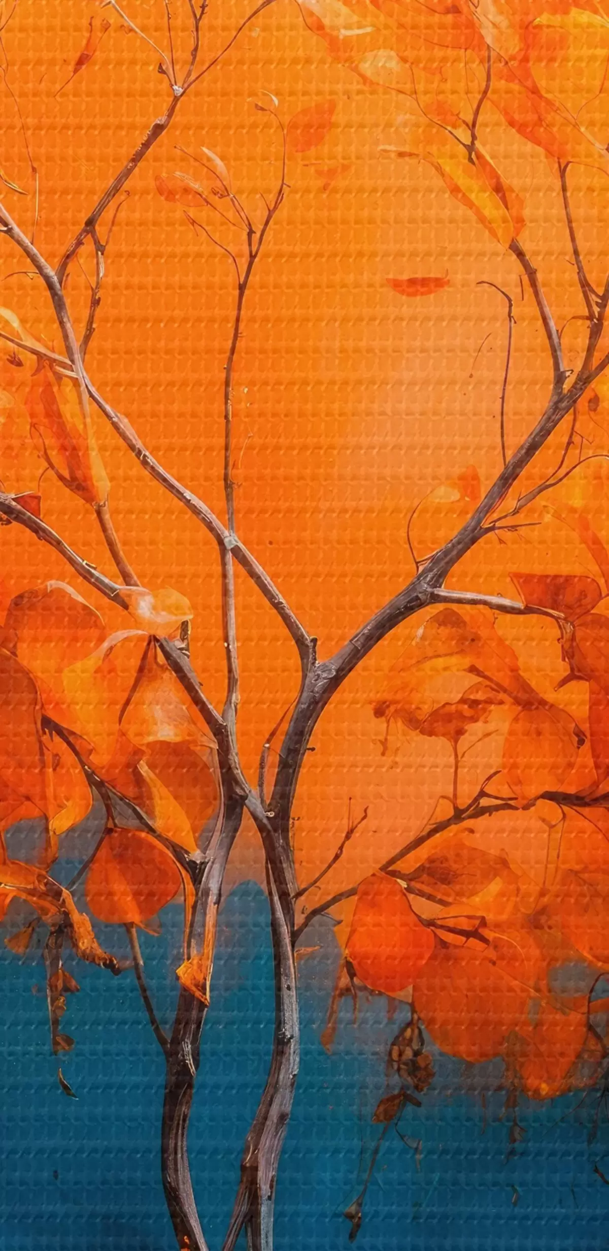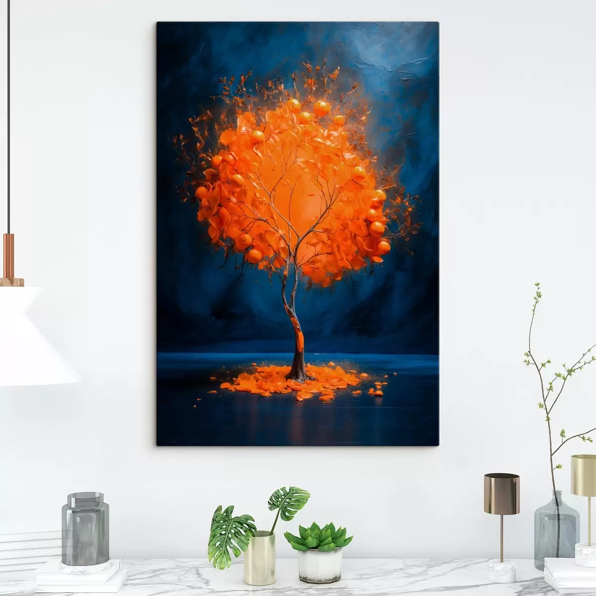 Obraz Oranžový strom na modrém pozadí ve stylu akrylové malby Č. s42525