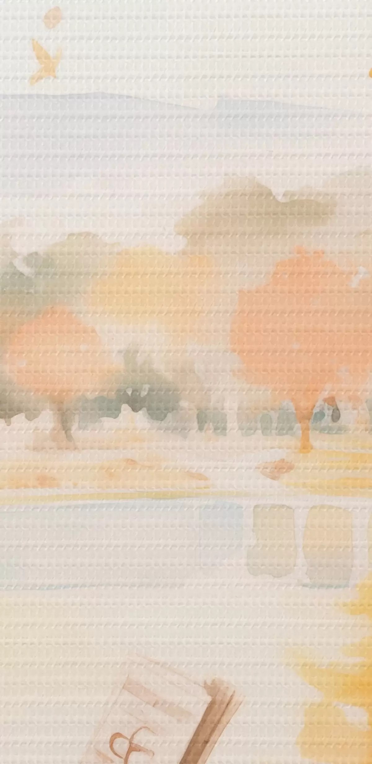Obraz Dívka čtoucí knihu u otevřeného okna v podzimní scenérii, s jasnými stromy v pozadí a šálkem čaje poblíž. Č. s42572