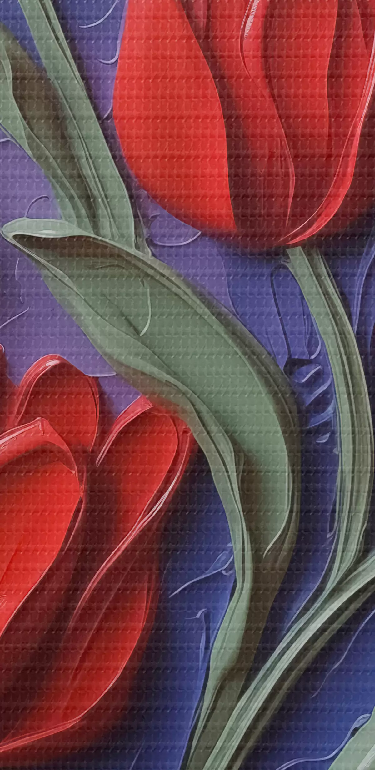 Obraz Červené tulipány na fialové imitaci tahů štětcem Č. s42584