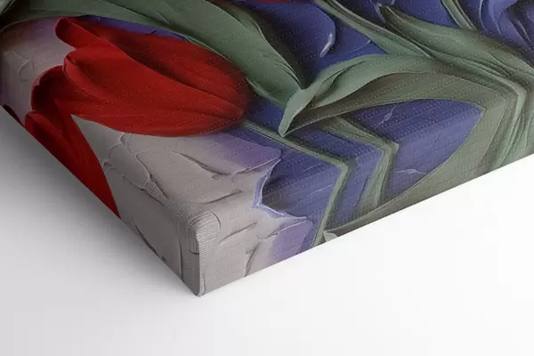 Obraz Červené tulipány na fialové imitaci tahů štětcem Č. s42584
