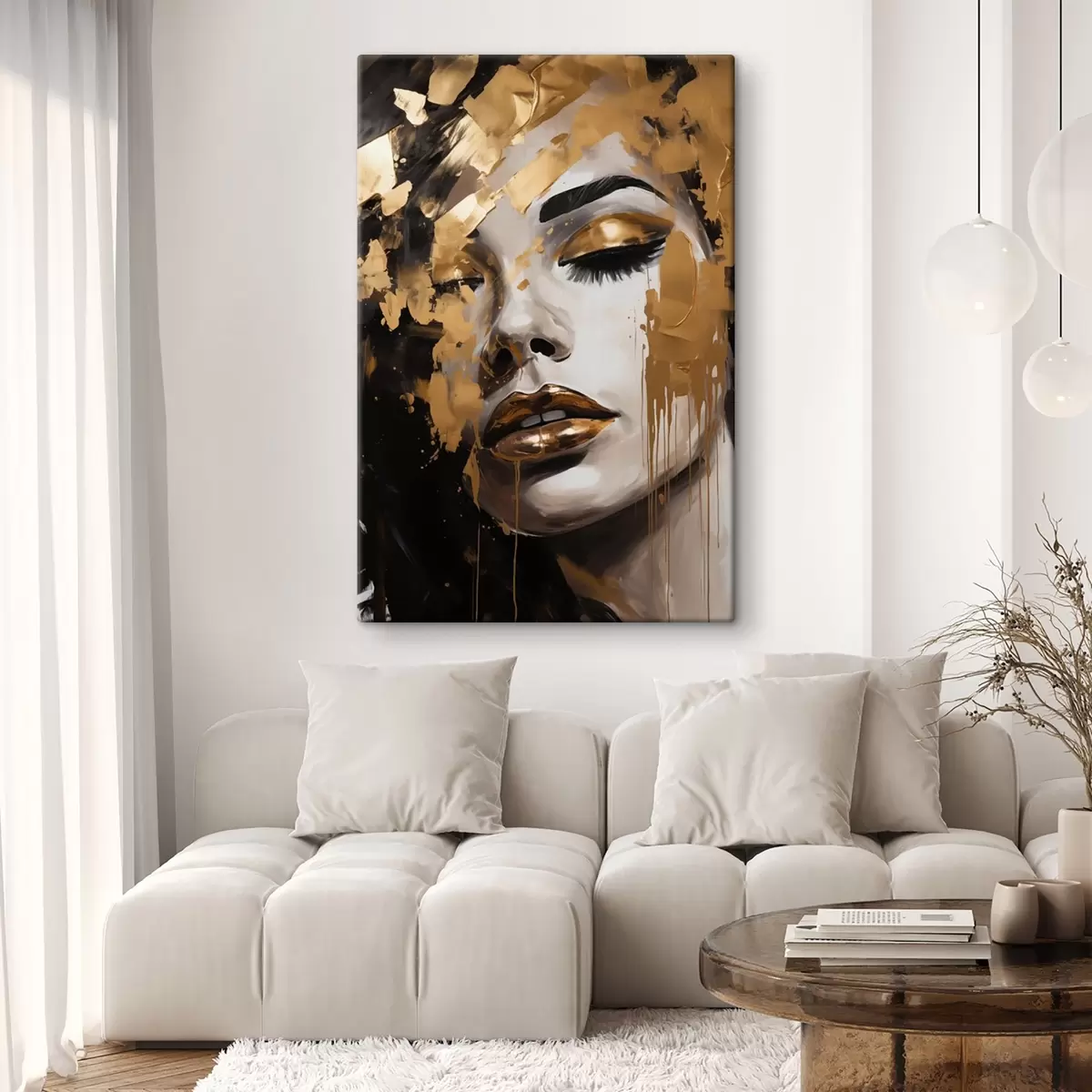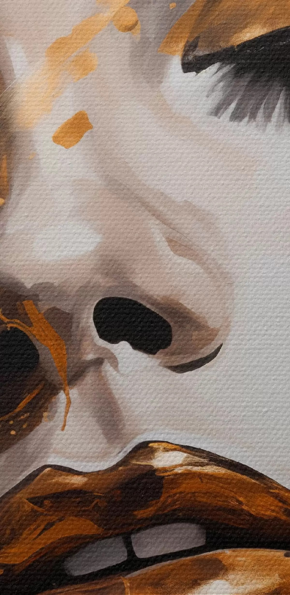 Obraz Abstraktní portrét ženy s bohatými tahy štětce v teplých tónech, které vytvářejí živý a dramatický obraz. Č. s42619