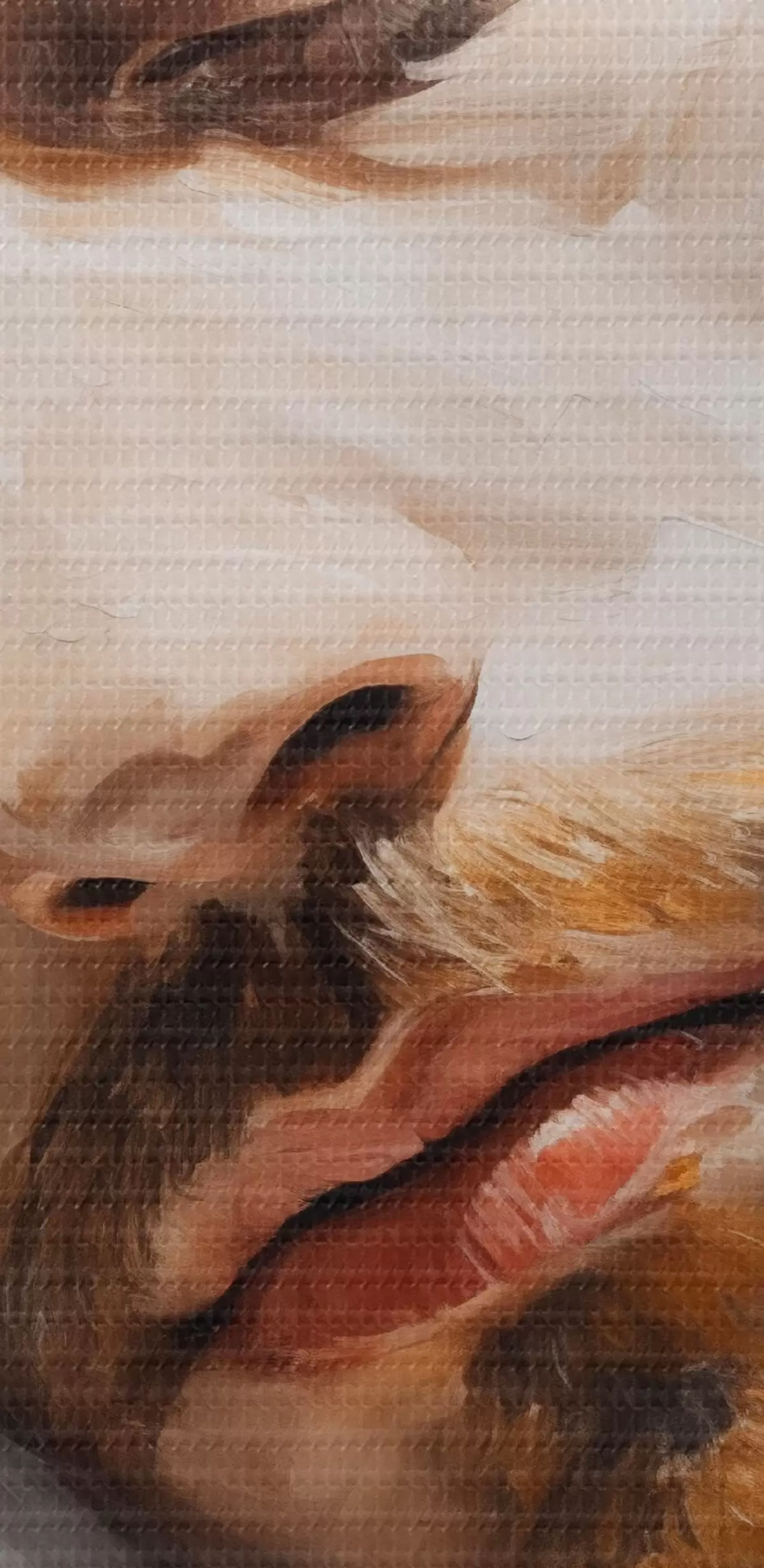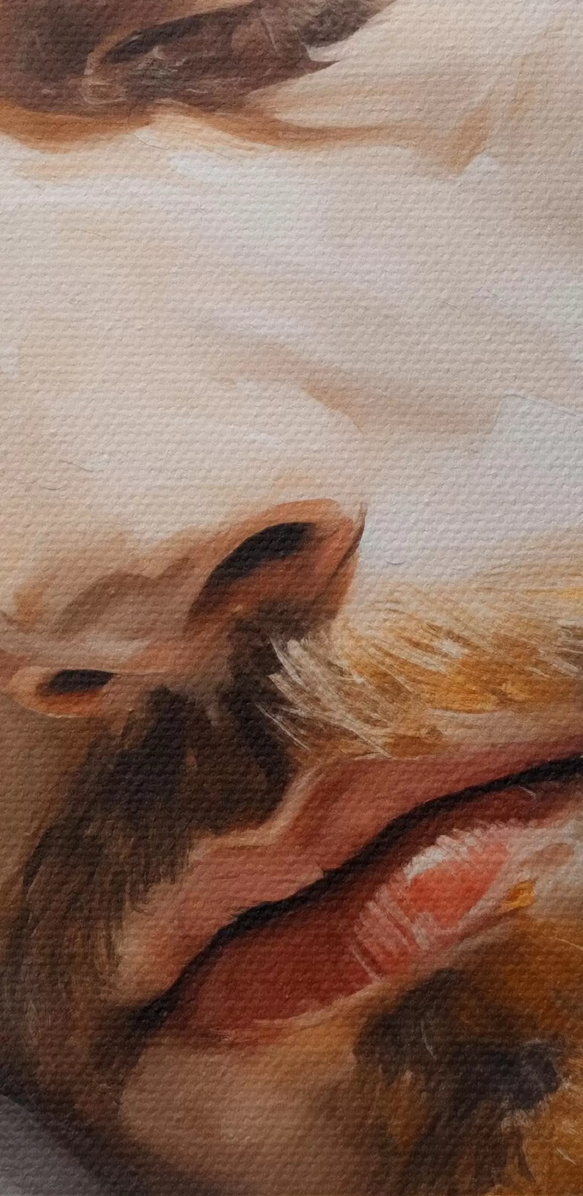 Obraz Abstraktní portrét muže se zavřenýma očima v měkkých teplých tónech s hladkými tahy štětce, které navozují pocit klidu. Č. s42621