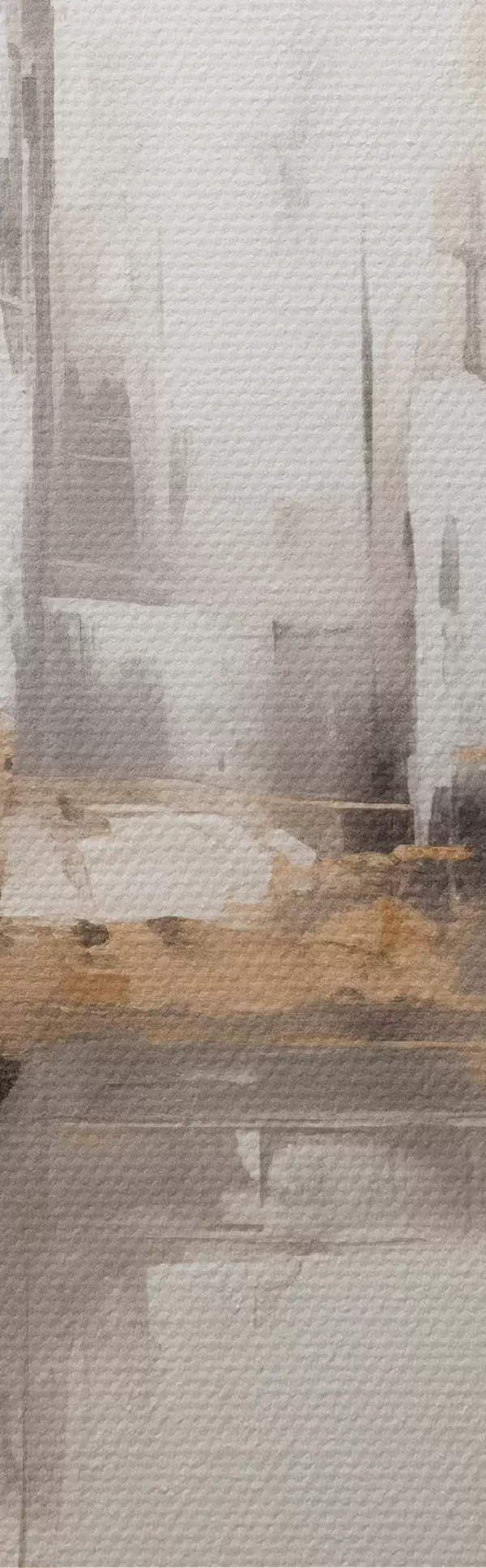 Obraz Abstraktní městská krajina s odrazy budov ve vodě, vytvořená v neutrálních tónech s akcenty teplých odstínů. Č. s42628