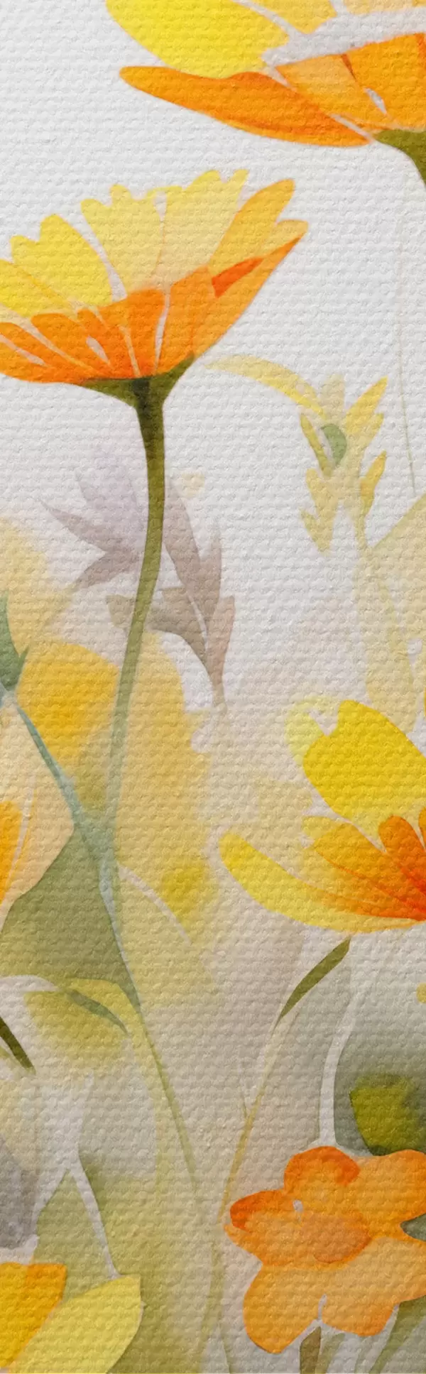 Obraz Zářivé akvarelové pole květin s oranžovými a bílými sedmikráskami a motýlem poletujícím poblíž Č. s42714