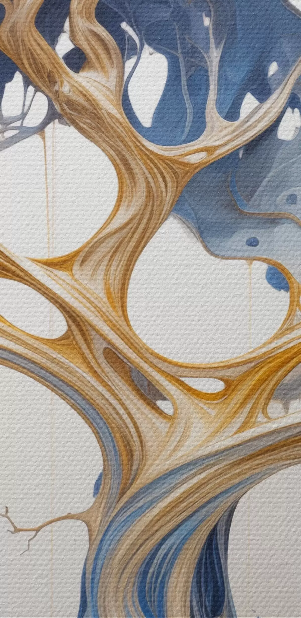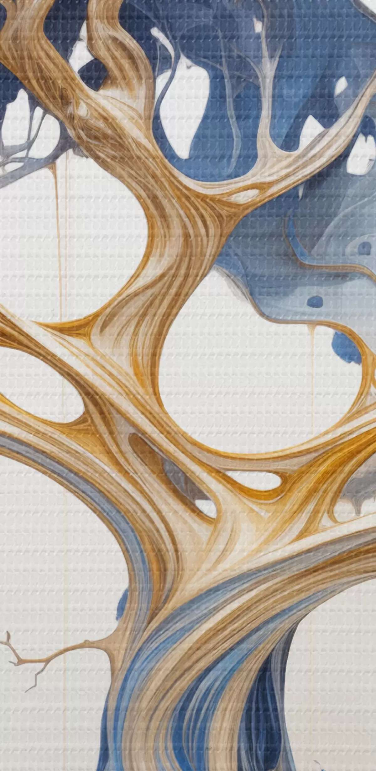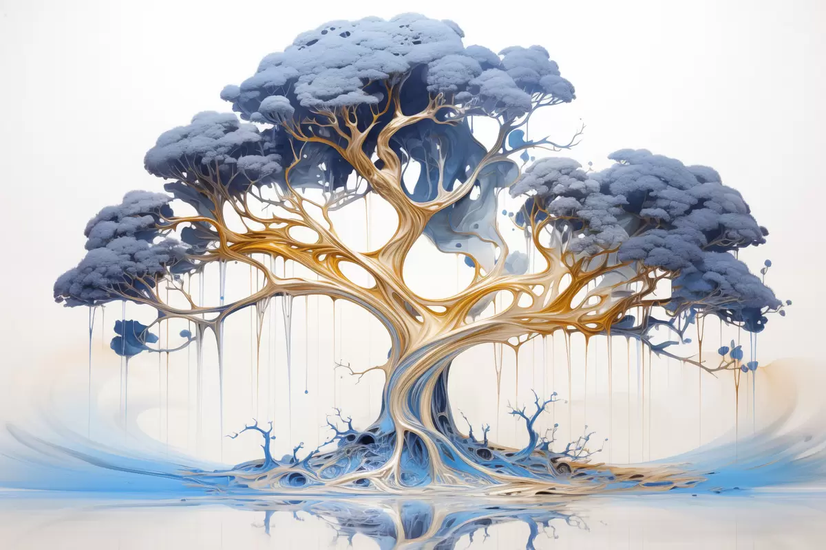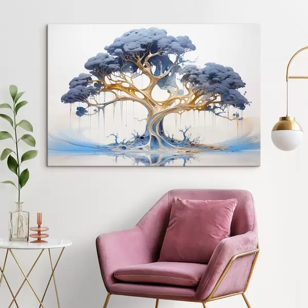 Obraz Stylizovaný strom se složitými větvemi a listím , který se vyznačuje směsí modrých a žlutých odstínů Č. s42722