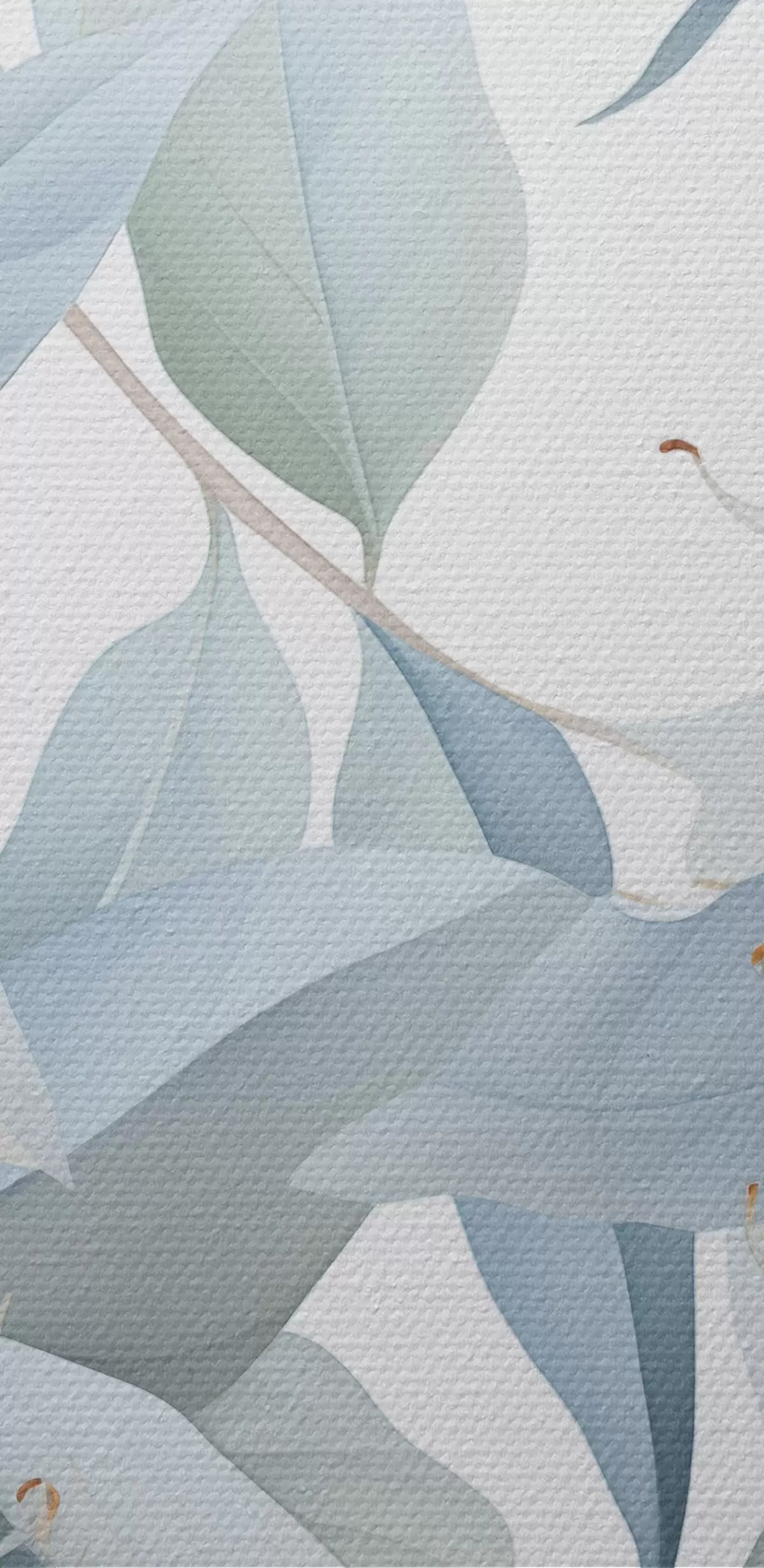 Obraz Detailní botanická ilustrace květů eukaliptu s bílými vlákny, obklopených jemnými, světle zelenými listy Č. s42725