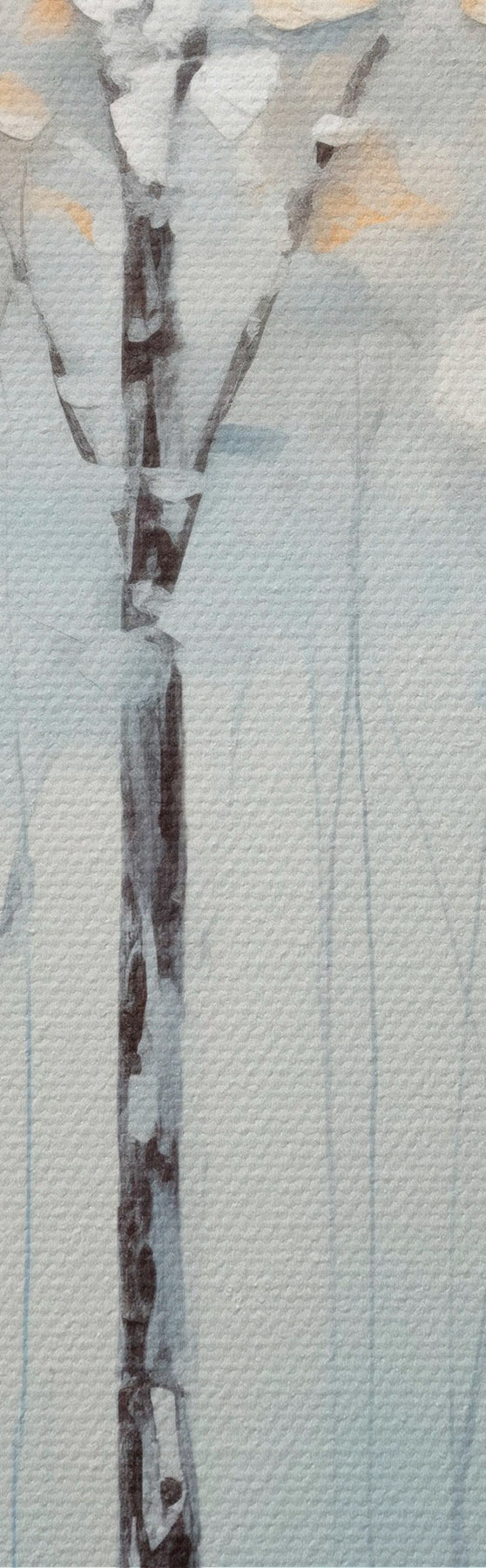 Obraz Vysoké, štíhlé stromy s modrými listy a žlutým nádechem na jemném modrém pozadí, imitace olejomalby Č. s42731
