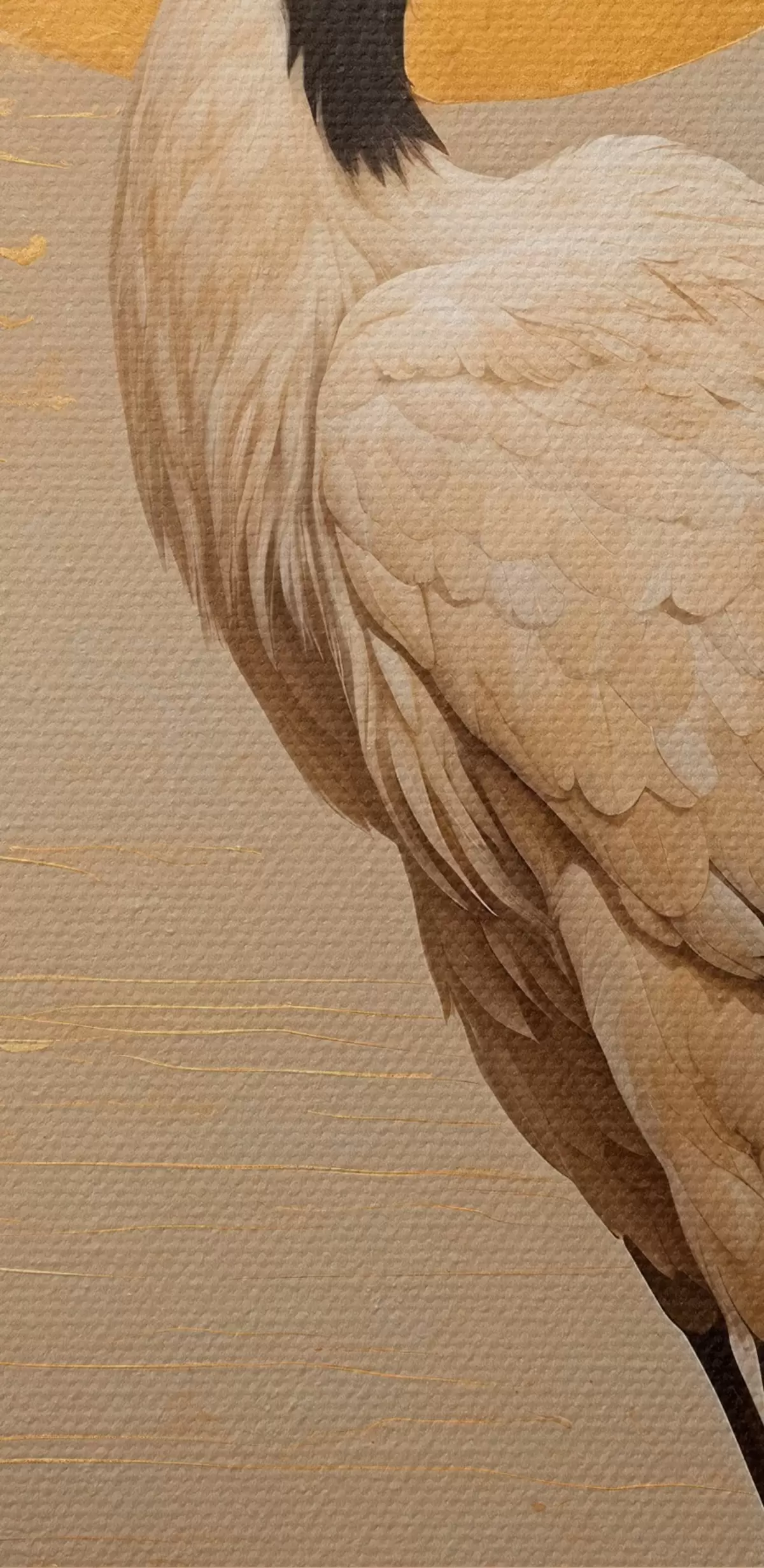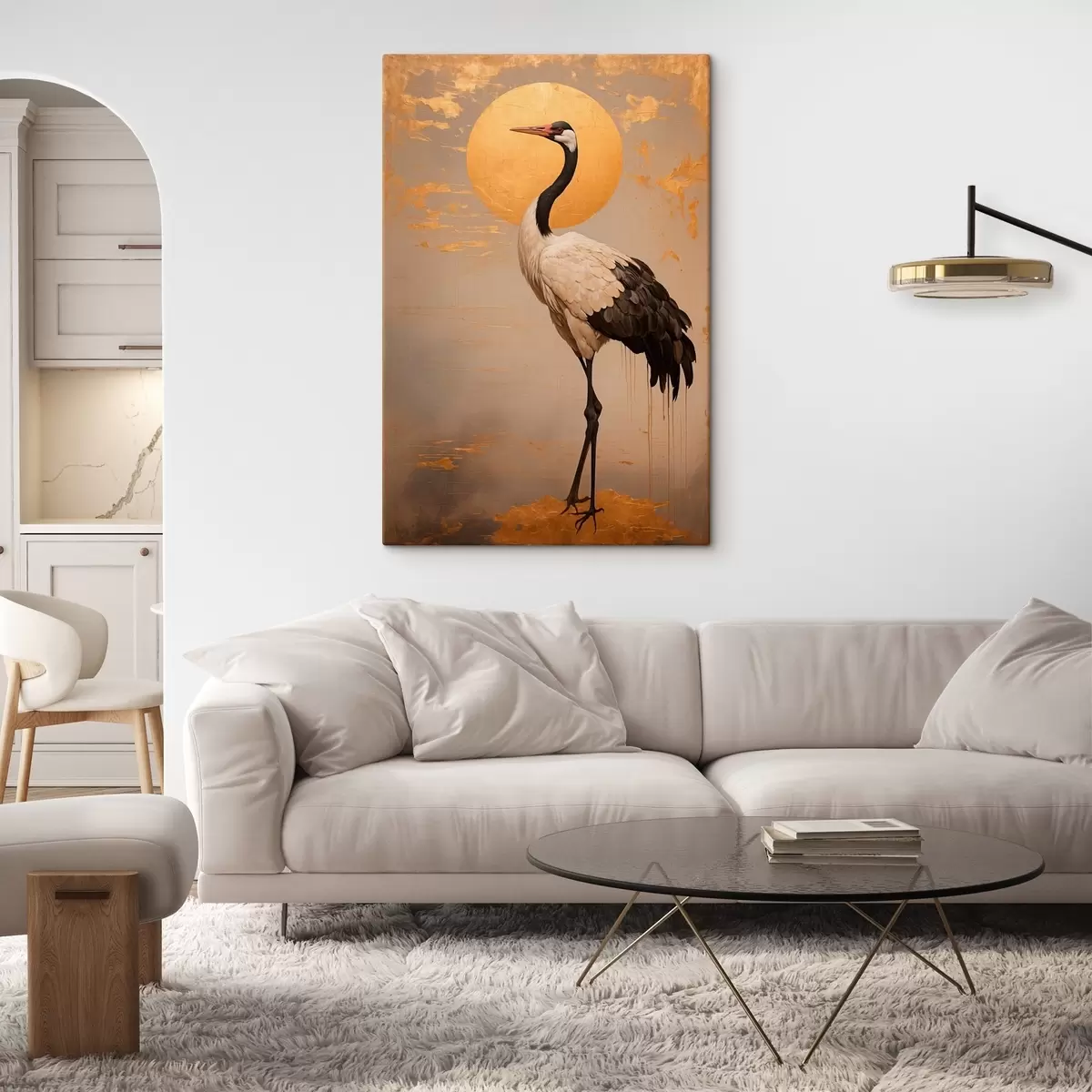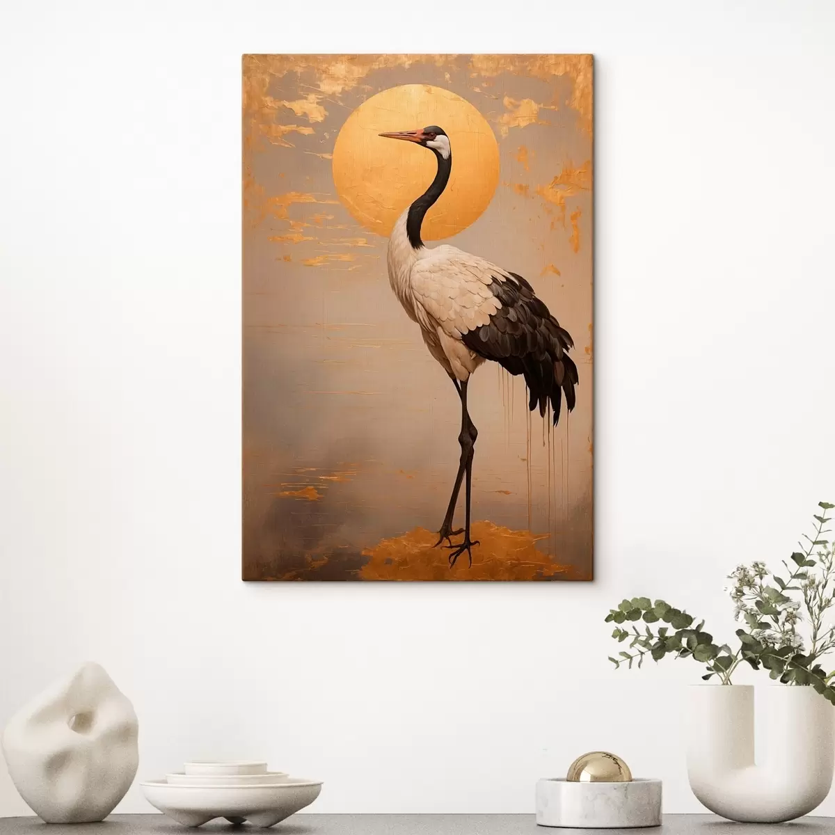 Obraz Jeřáb na pozadí slunce ve stylu akrylové malby Č. s42773