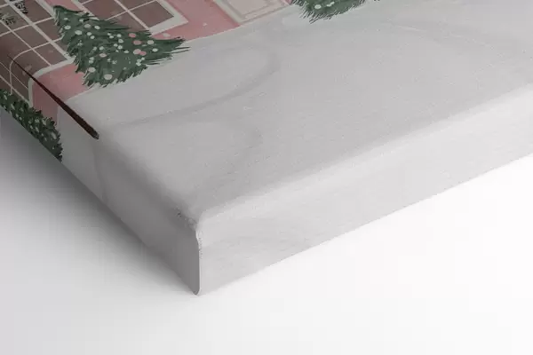 Obraz Roztomilé růžové domy, borovice, zimní krajina Č. s42791