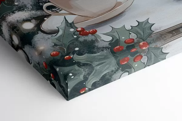 Obraz Šálky kávy v útulné kavárně, zimní estetika, boho styl Č. s42797