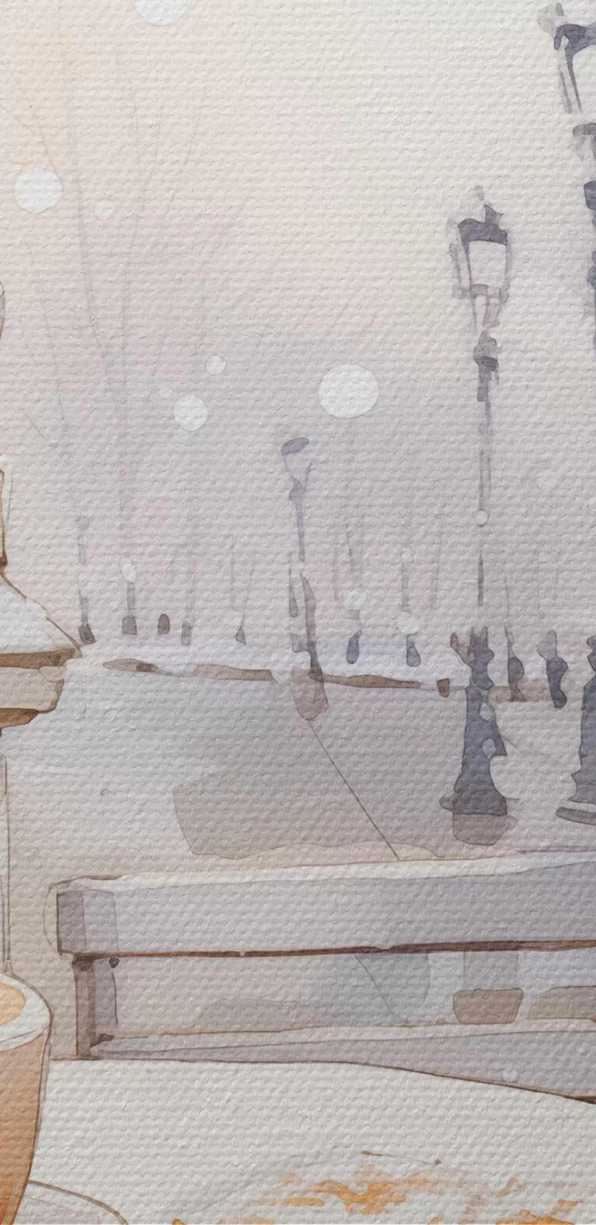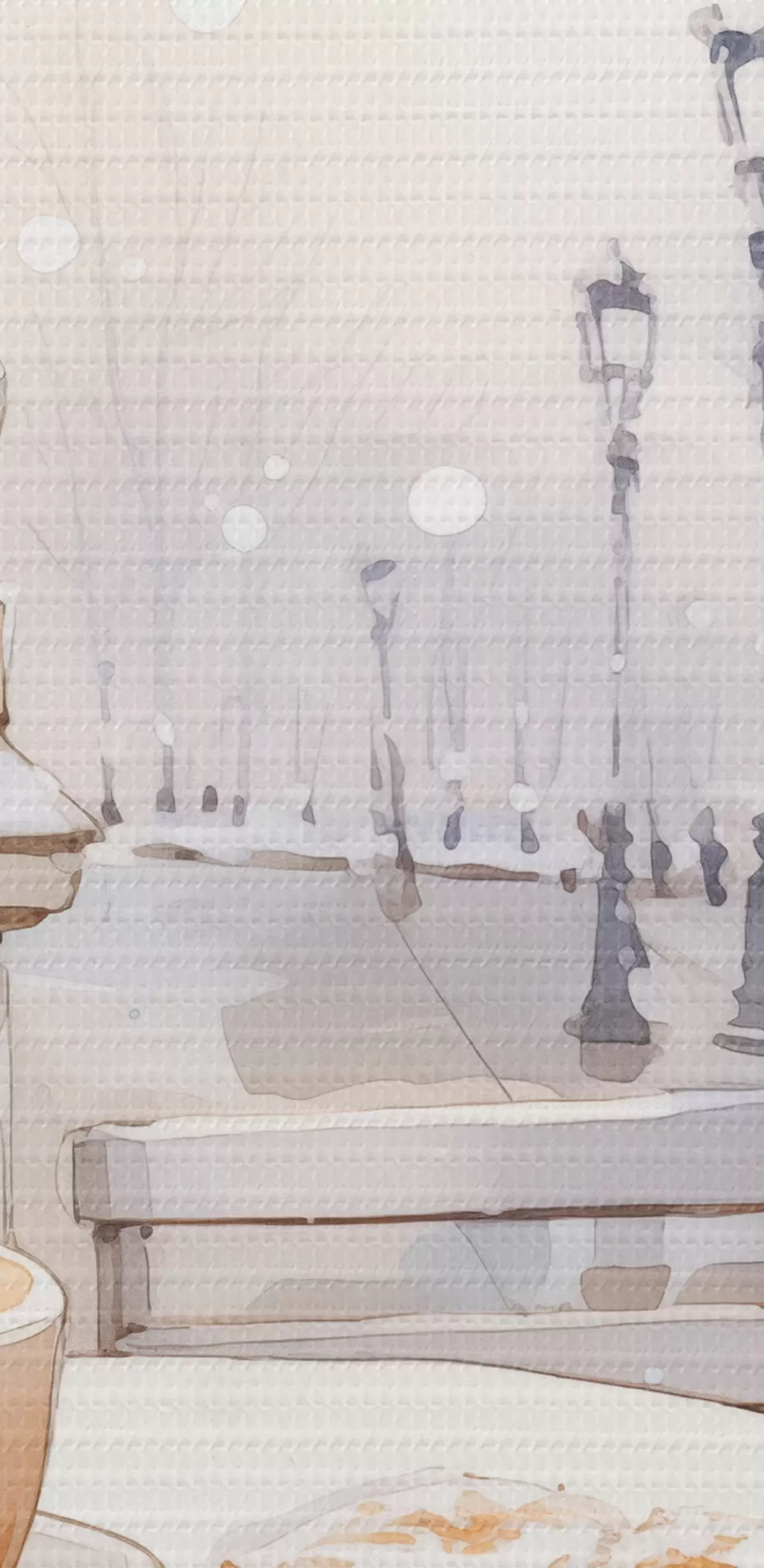 Obraz Estetická pouliční kavárna, Francie, čerstvé pečivo, kresba ve stylu akvarelu Č. s42798