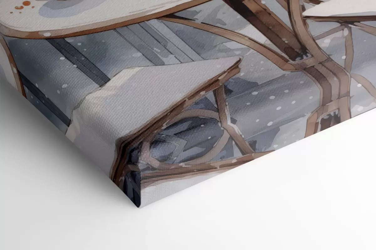 Obraz Estetická pouliční kavárna, Francie, čerstvé pečivo, kresba ve stylu akvarelu Č. s42798