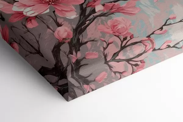 Obraz Růžové květy a stonky ve stylu akrylové malby Č. s42918