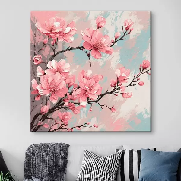 Obraz Růžové květy a stonky ve stylu akrylové malby Č. s42918