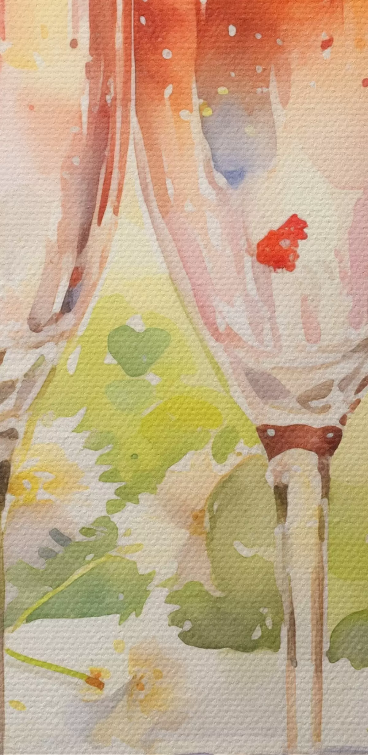 Obraz Akvarelová kresba sklenic na šampaňské, květin a jahod Č. s43056