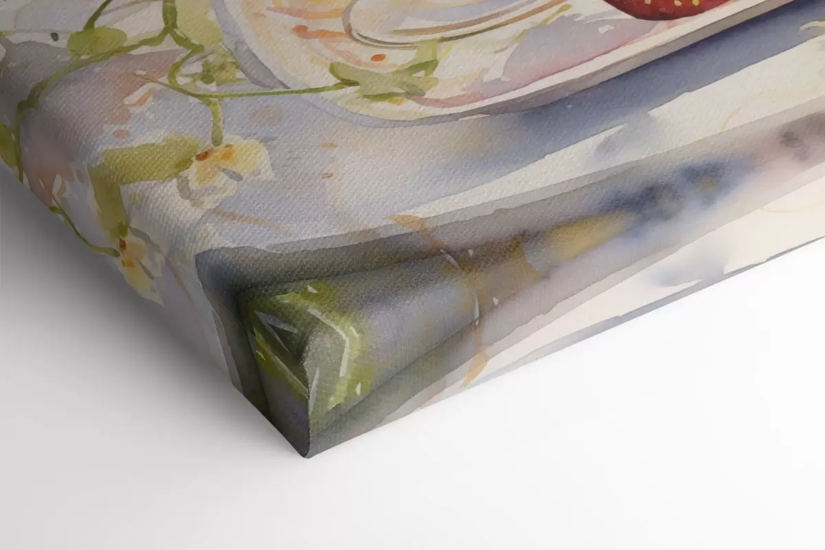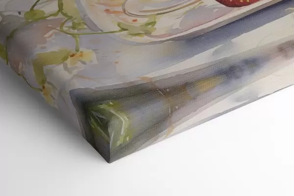 Obraz Akvarelová kresba sklenic na šampaňské, květin a jahod Č. s43056