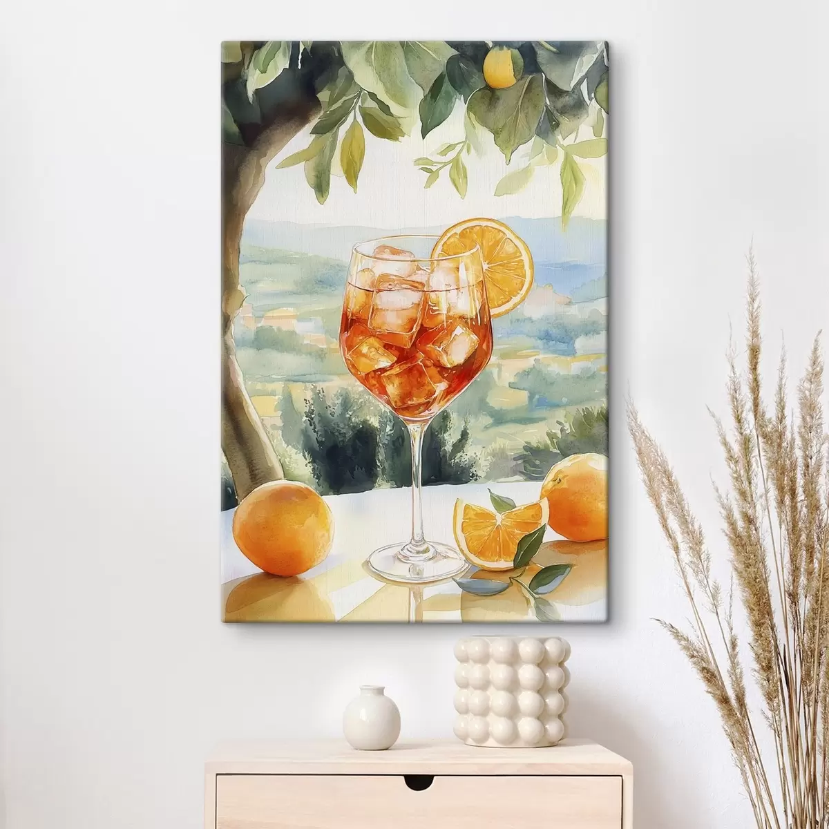Obraz Letní koktejl, Aperol Spritz, pomeranče, kresba ve stylu akvarelu Č. s43058