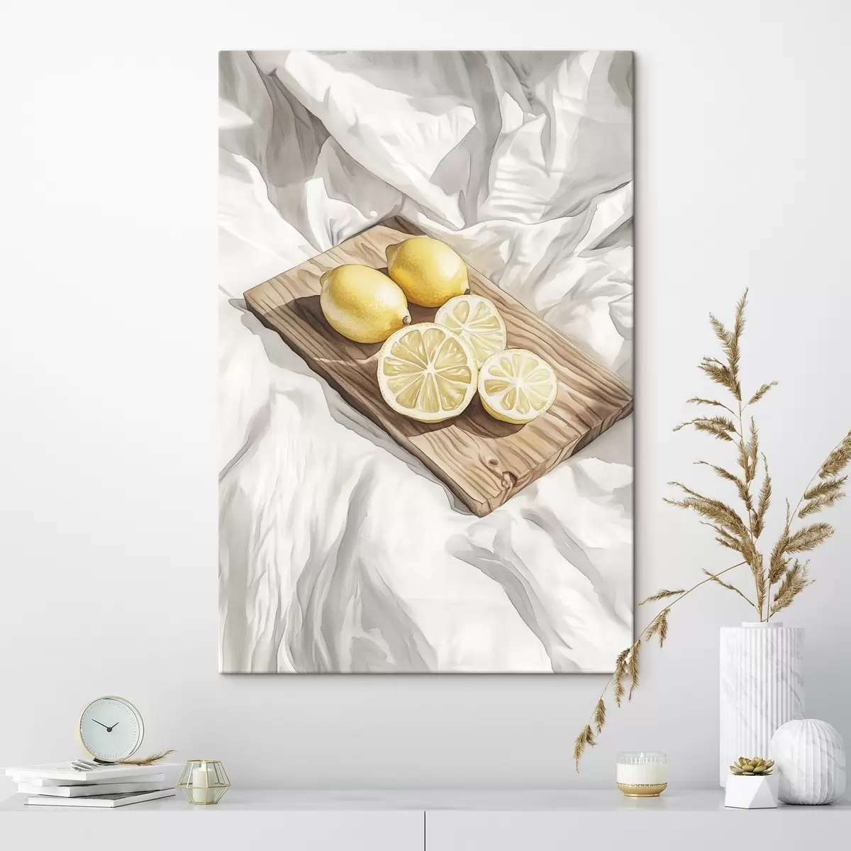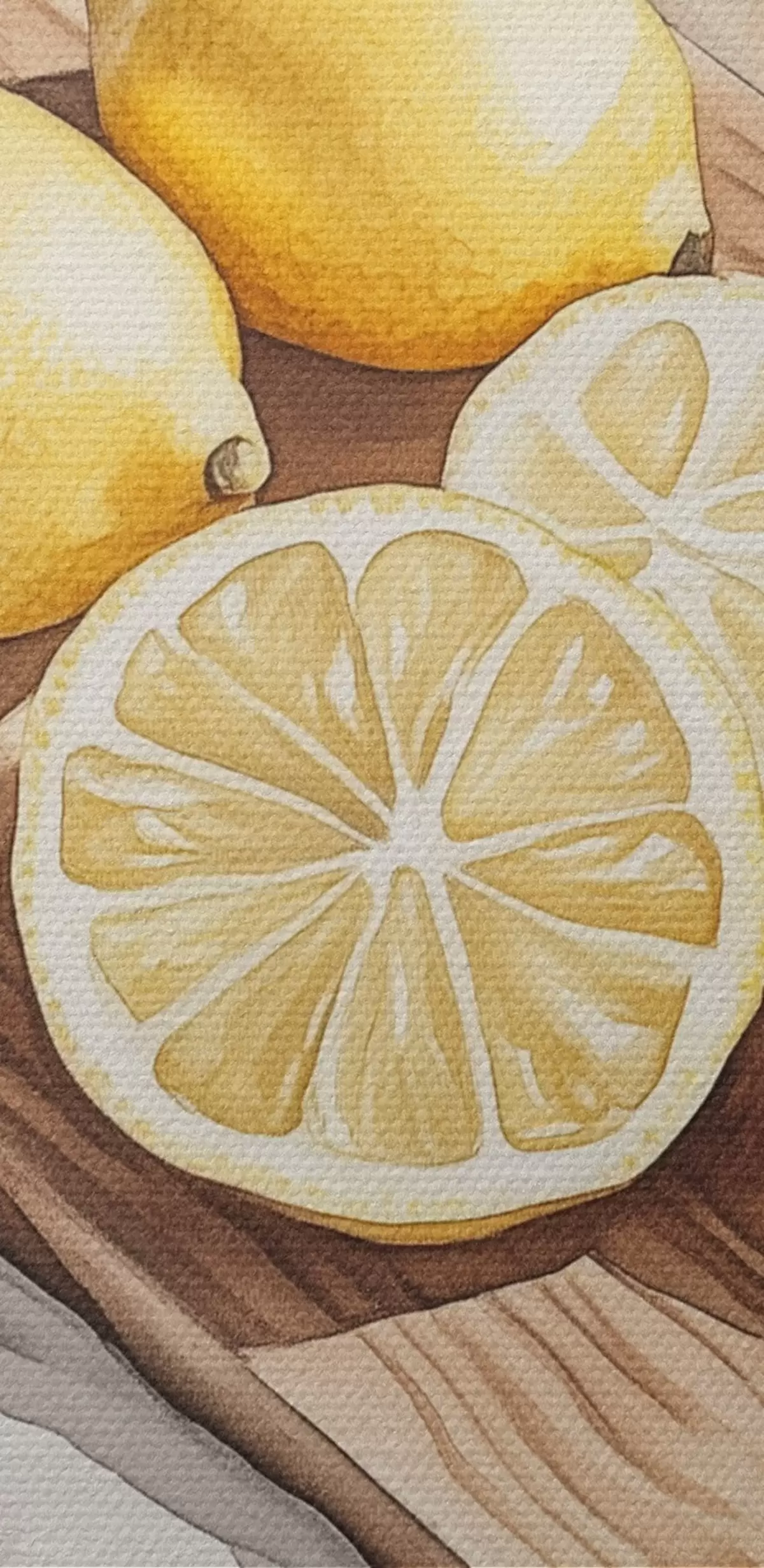 Obraz Citrony na dřevěné desce, akvarel, rustikální styl Č. s43064