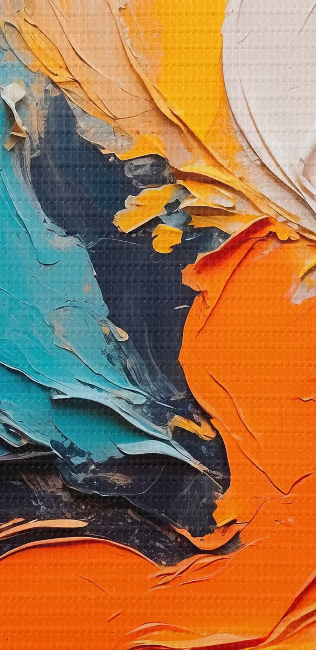 Obraz Abstraktní malba ve stylu olejomalby s oranžovou, modrou a bílou barvou Č. s43094