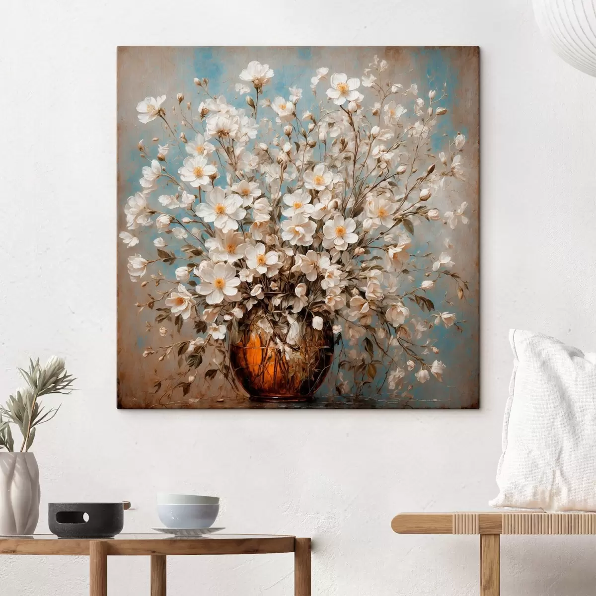 Obraz Bílé květiny ve váze na akrylovém pozadí Č. s43107