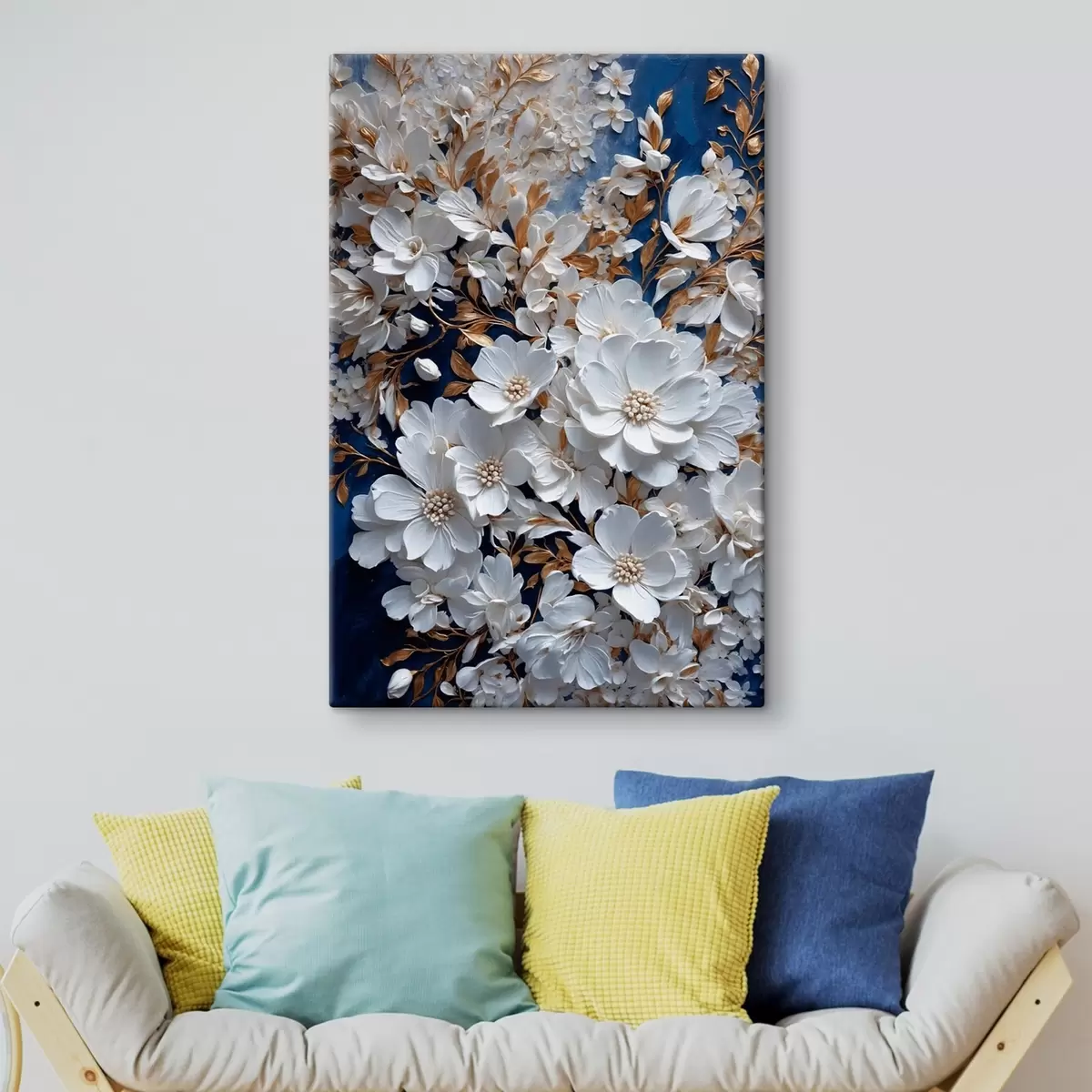 Obraz Bílé květy na modrém pozadí Č. s43116