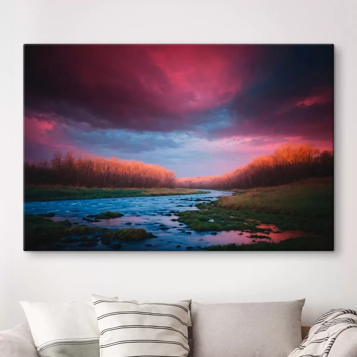 Obraz Potok na poli na pozadí fialové oblohy Č. s43120