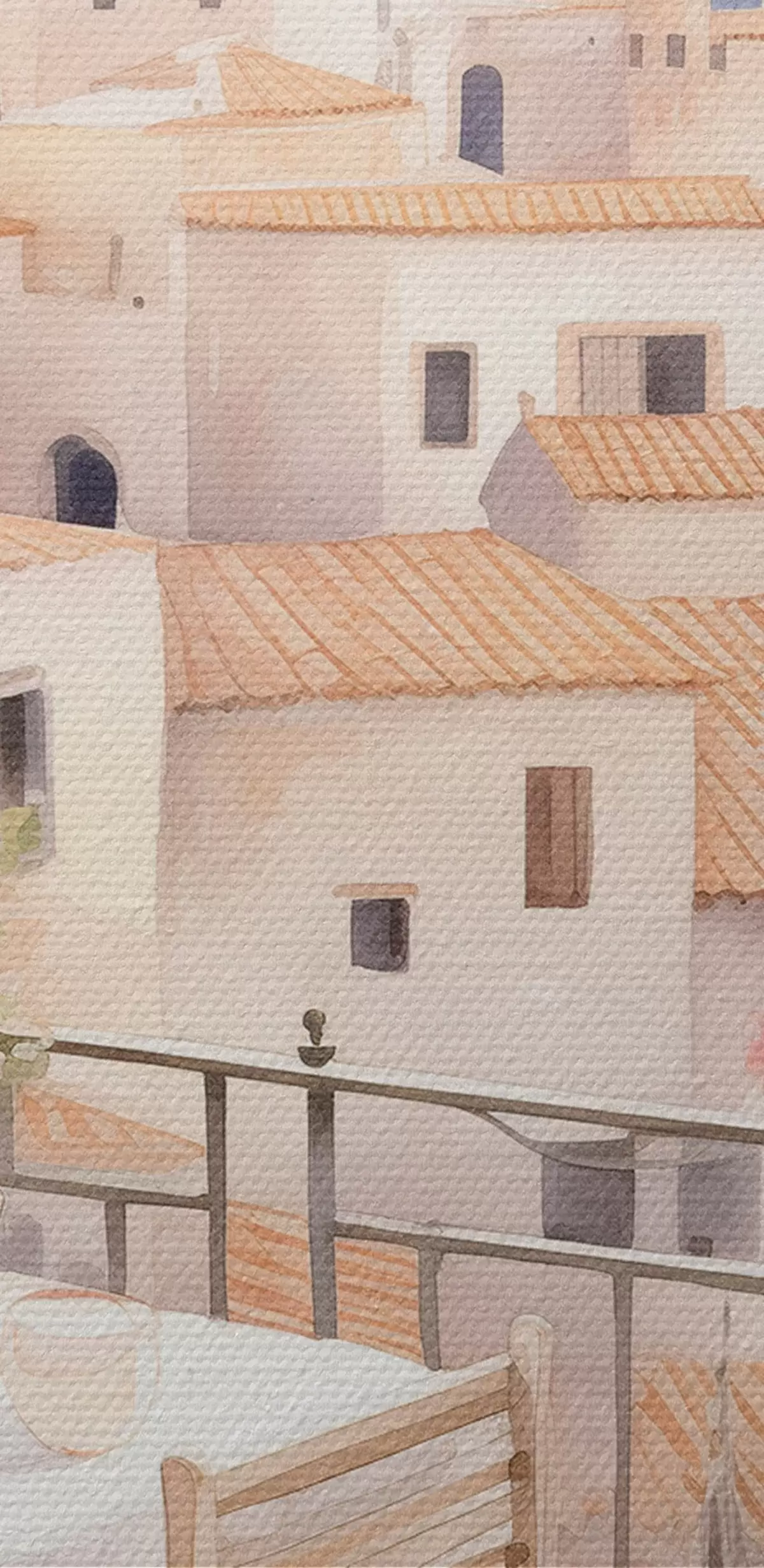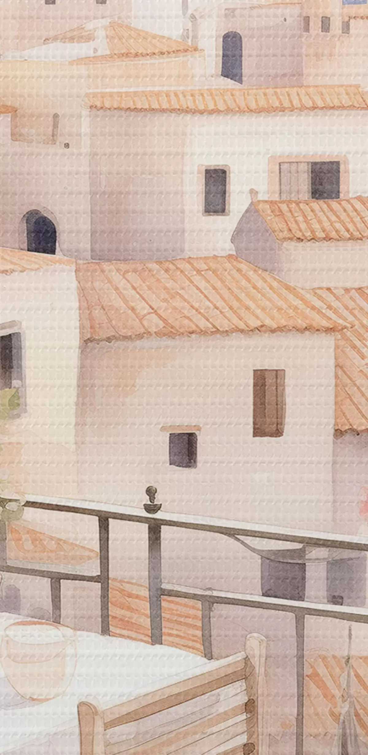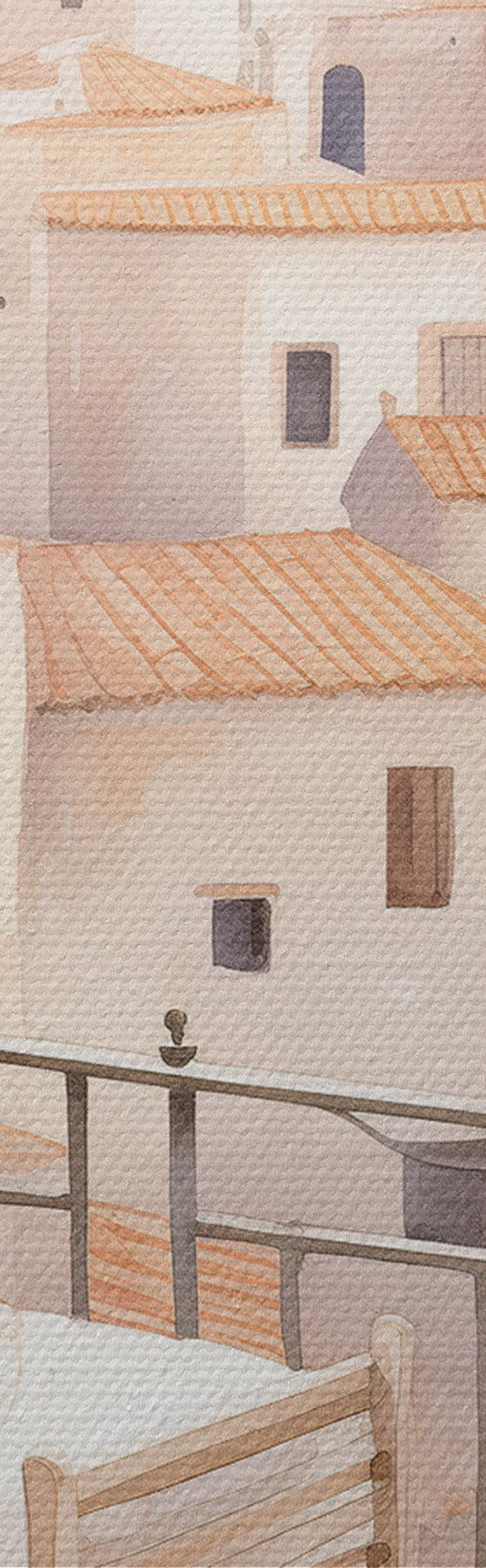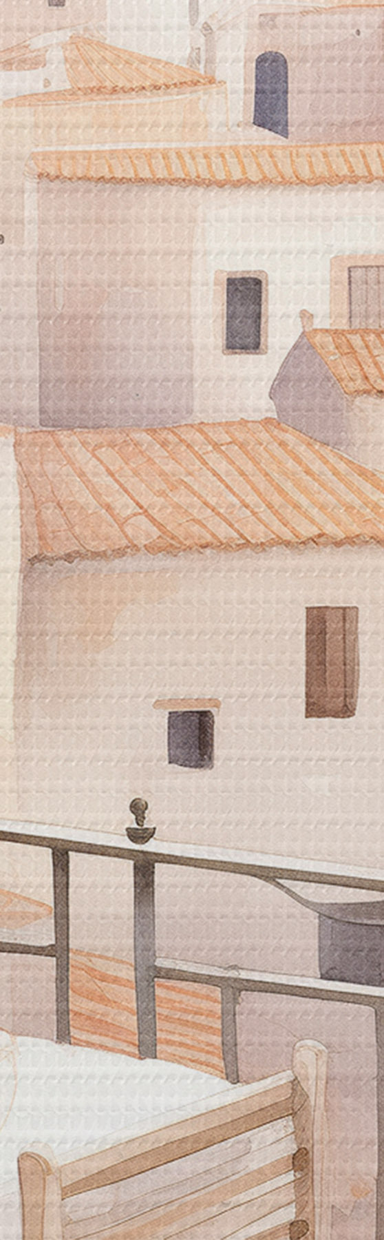 Obraz Západ slunce na balkoně, Itálie, architektura, kvetoucí květiny, akvarel Č. s43184