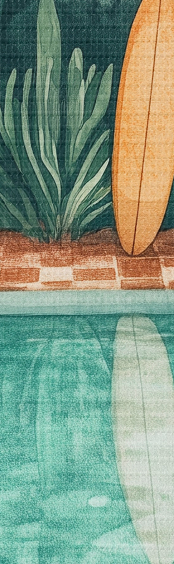 Obraz Vintage letní bazén, tropický les, zeleň, palmy, akvarelový styl Č. s43191