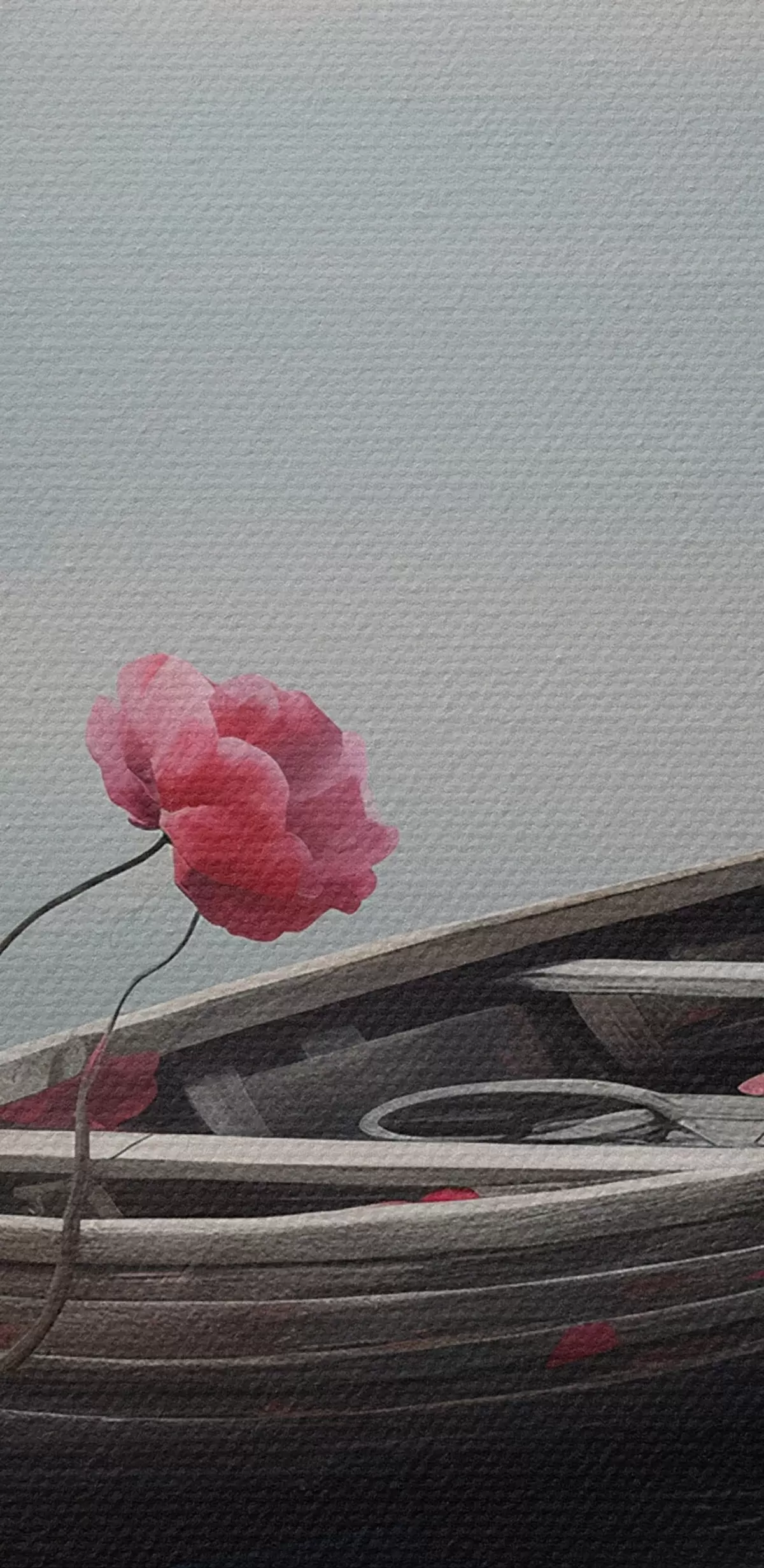 Obraz Loďka a květy máku na jezeře Č. s43203