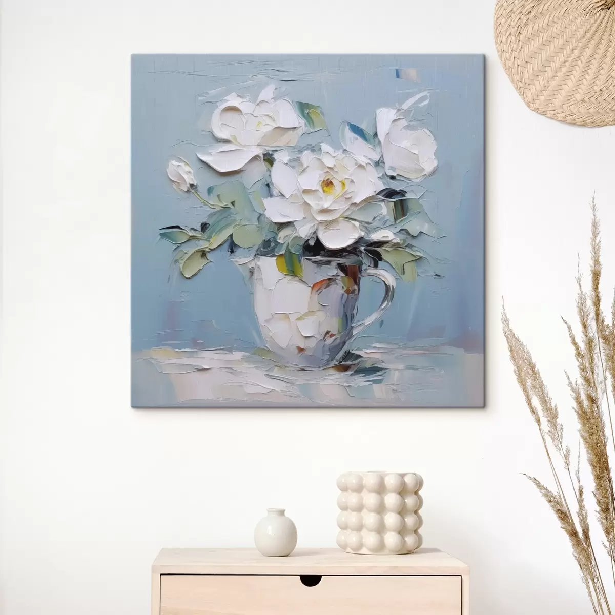 Obraz Bílé květy v šálku imitace malby Č. s43225