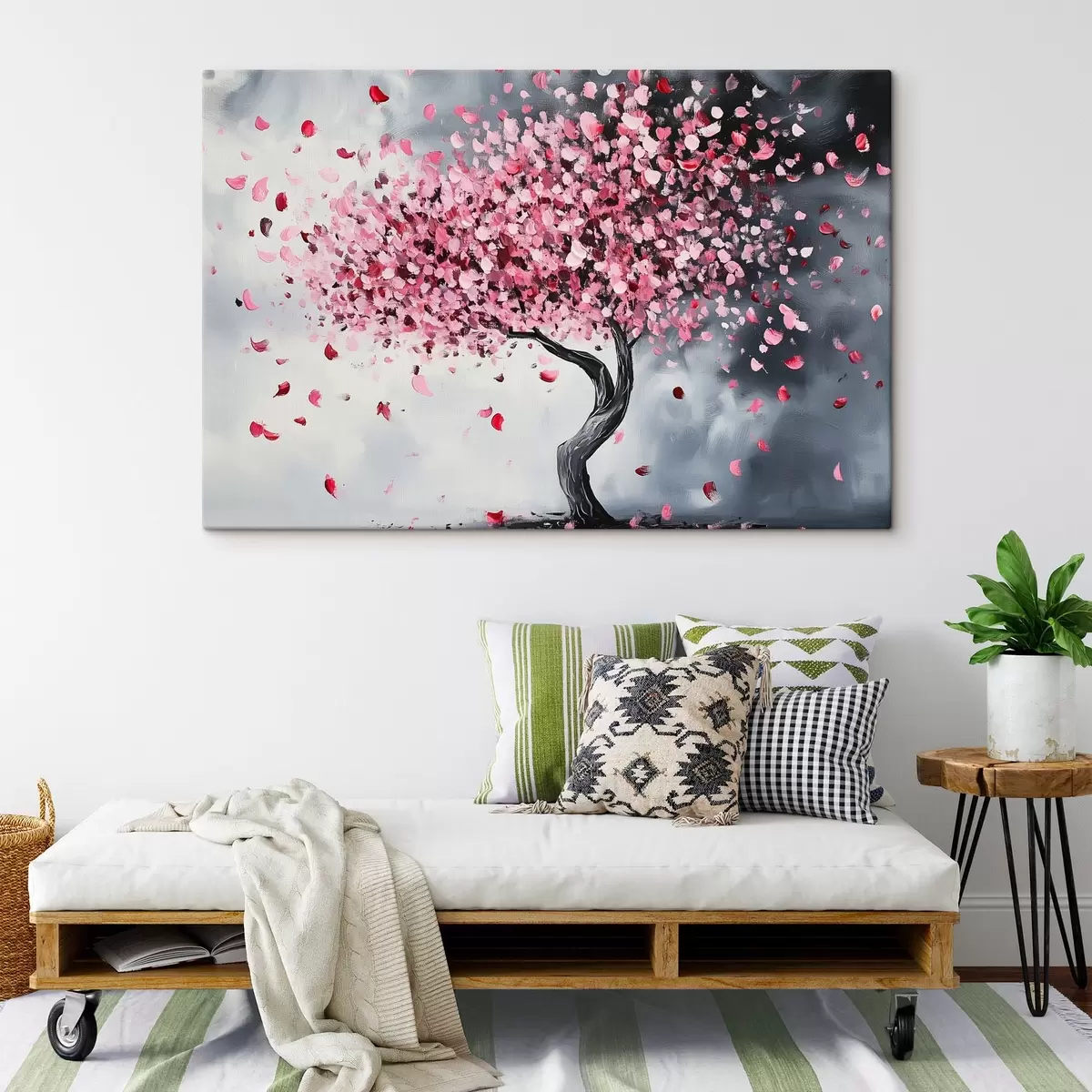 Obraz Růžový kvetoucí strom na šedém pozadí Č. s43299