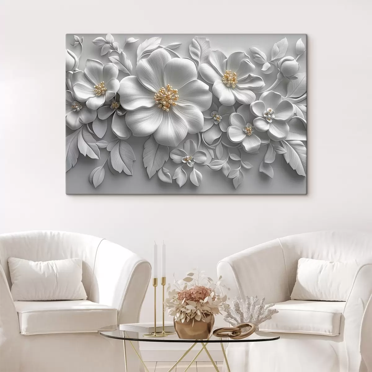 Obraz 3d šedé květy se žlutým akcentem Č. s43310