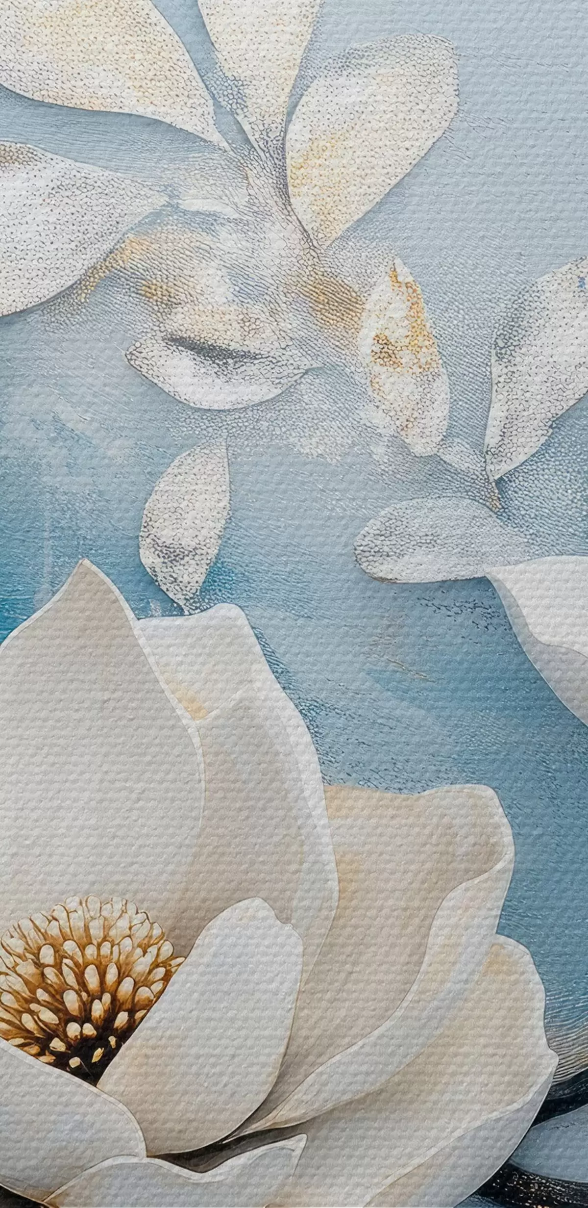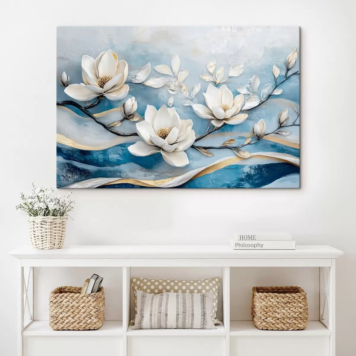 Obraz Větev magnólie na abstraktním modrožlutém pozadí Č. s43323