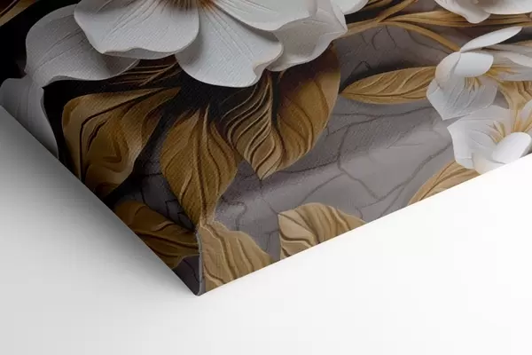 Obraz Bílé květy ve stylu reliéfní fresky se žlutými listy a tyčinkami Č. s43330