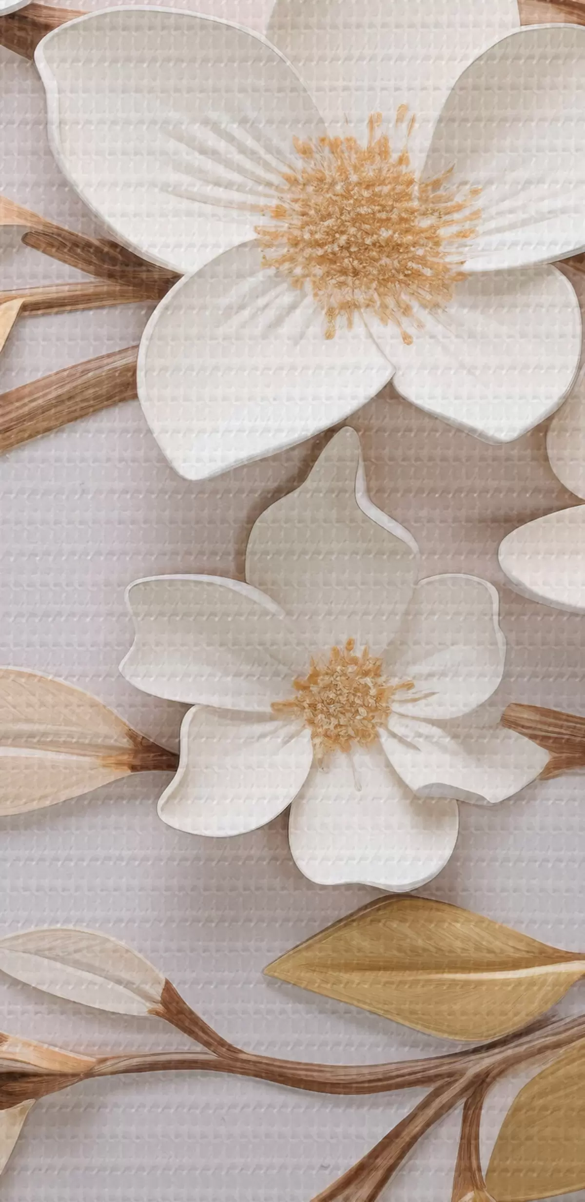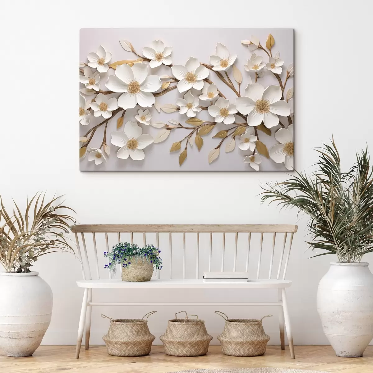 Obraz Bílé květy ve stylu reliéfní fresky se žlutými akcenty Č. s43331