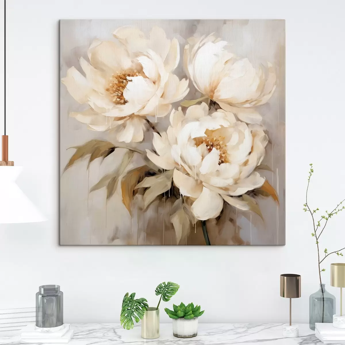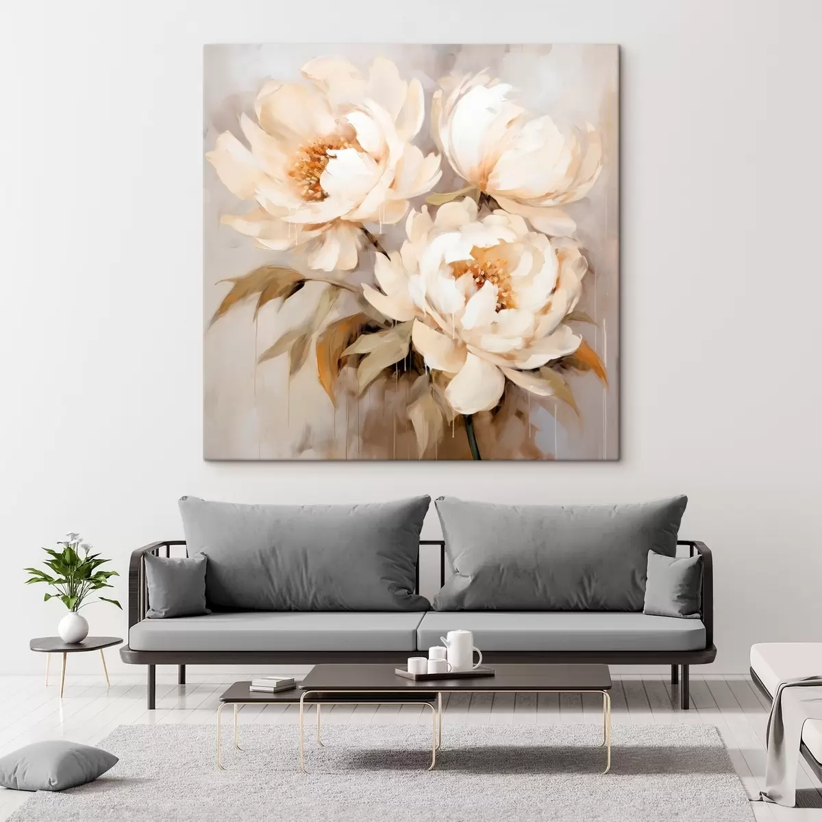 Obraz Jemné pivoňky v neutrálních tónech ve stylu abstraktní malby Č. s43387