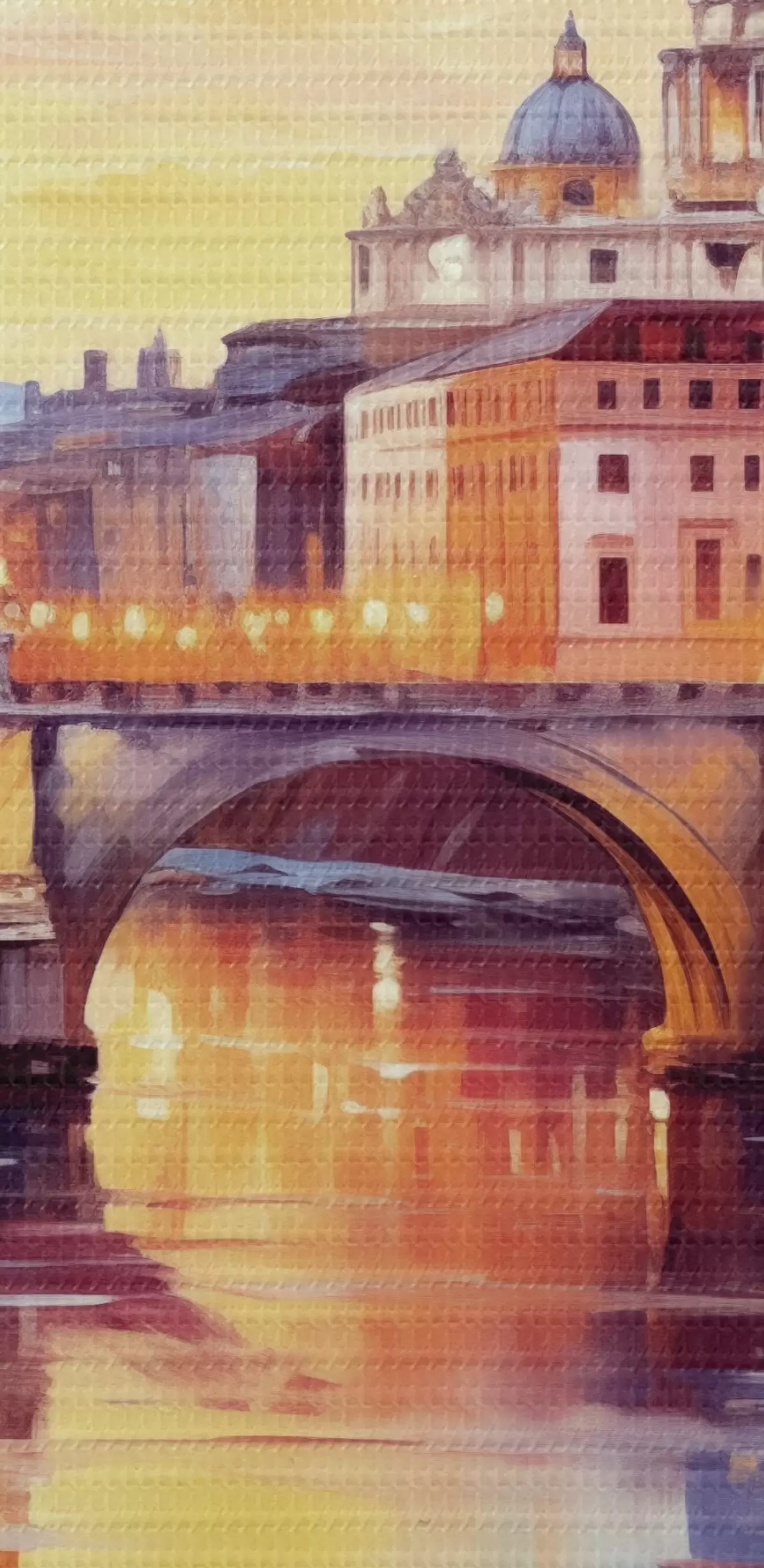 Obraz Bazilika svatého Petra a most přes řeku při západu slunce, teplé barvy, odraz ve vodě, styl olejomalby Č. s43396