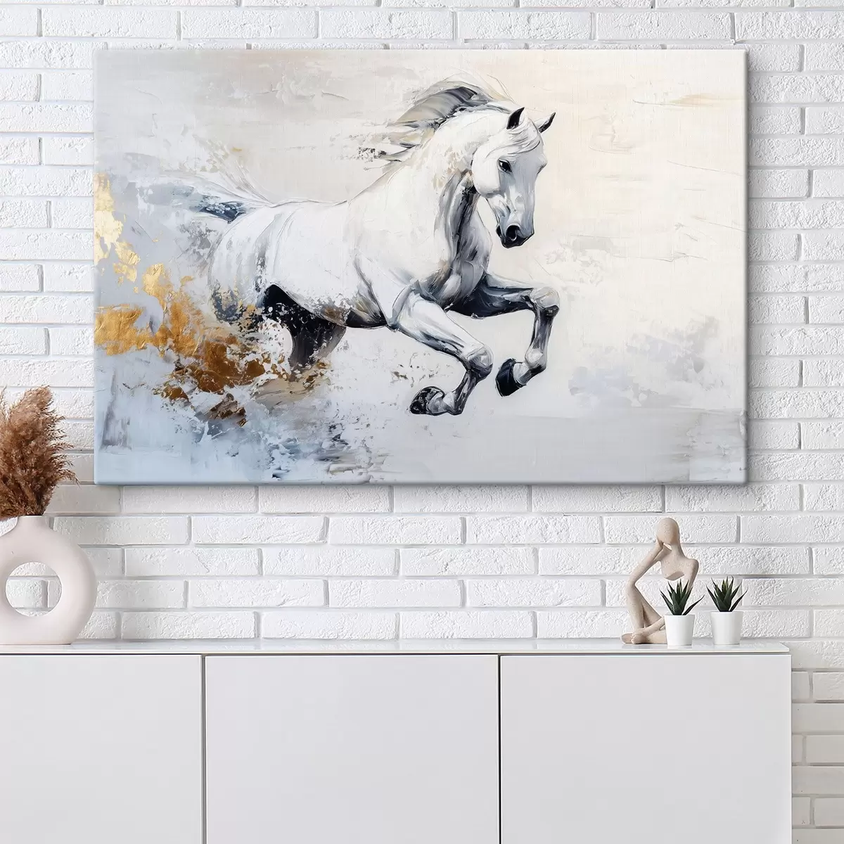 Obraz Běžící bílý kůň, olejomalba, zvířata Č. s43498