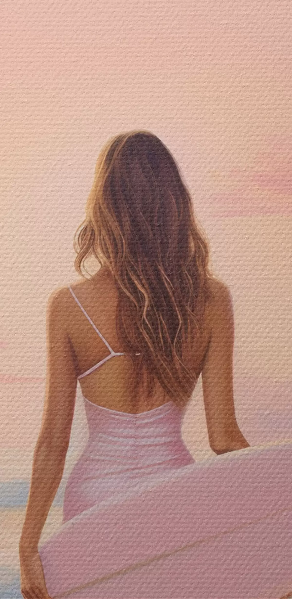 Obraz Dívka se surfovacím prknem na pláži oceánu, západ slunce, akrylová kresba Č. s43881
